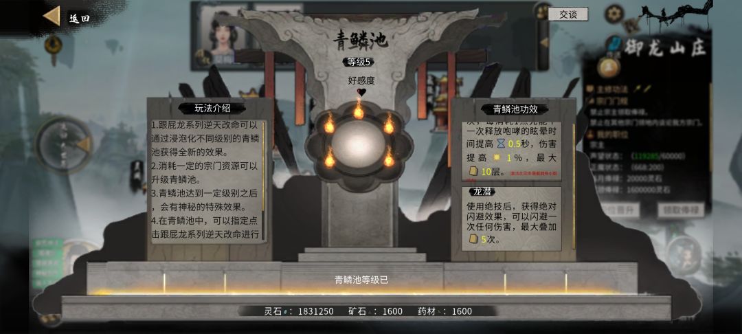 【多白嫖一个逆天改命效果】:开局拿先天气运《龙祖龙息》,进入游戏后先不要进御龙山庄,先进其他宗门当宗主,拿到3个或4个太古残卷并拿到4个宗门逆天改命,再退宗回新手村加入御龙山庄,再用记忆洗掉非宗门逆天改命换成小跟屁虫系列(5个),然后一个洲一个地升级青鳞池,升到仙盟之后就可以把所有跟屁虫洗掉了,【能保留一个【龙潜】的效果:使用绝技后,获得绝对闪避效果,可以闪避一次任何伤害,最大叠加5次】
