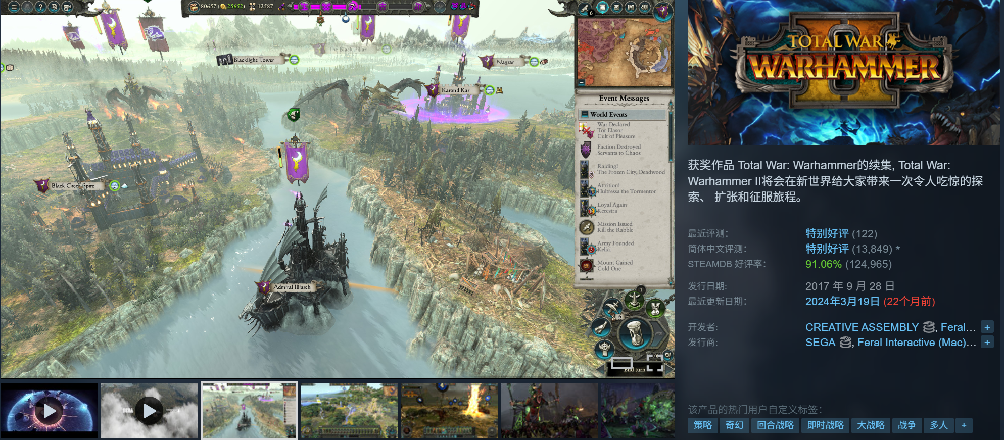 全面战争:战锤2拥有91%好评(IGN也给的9.1分),奇幻史诗冒险,画风细腻的回合战略,只是paradox家之前那几款我玩腻了,这款本身是没什么问题的。