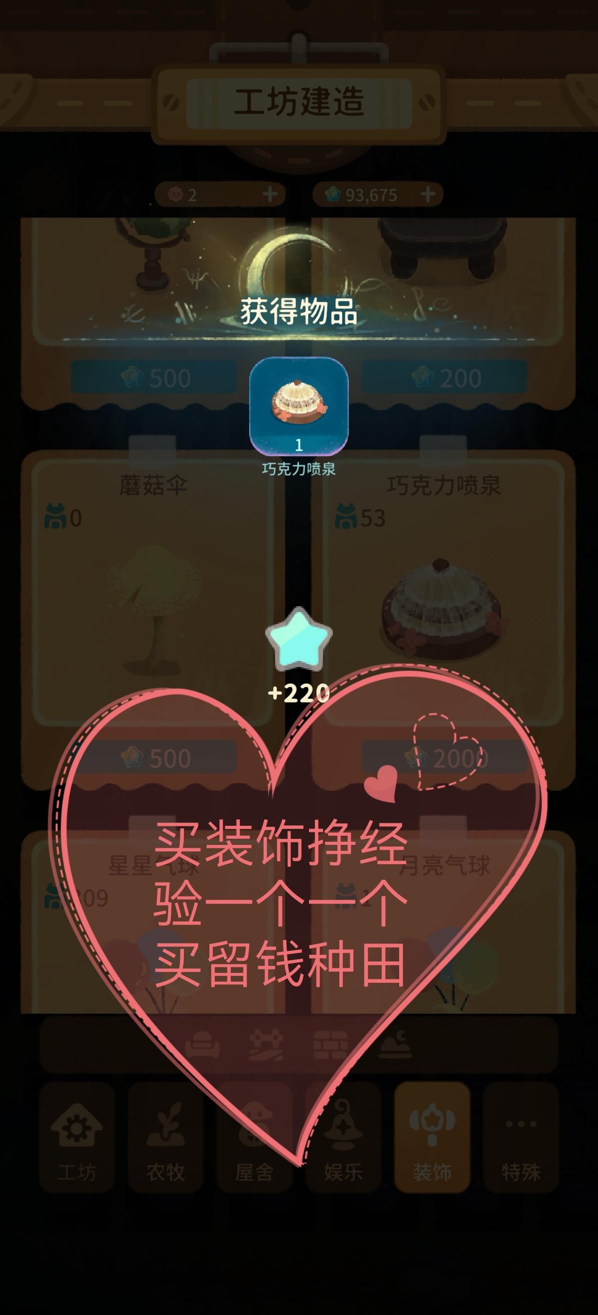 8.多余工坊币去买装饰挣经验,注意一个一个买,多买会浪费。注意留钱种田