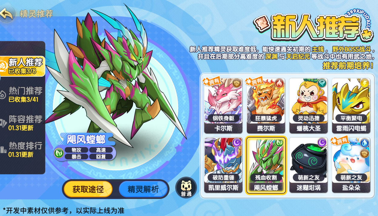 精灵推荐功能已上线,可查看当下最热门的精灵和阵容,助力小西普解决精灵选择困难,伴你从萌新到大师,一路畅享游戏乐趣!