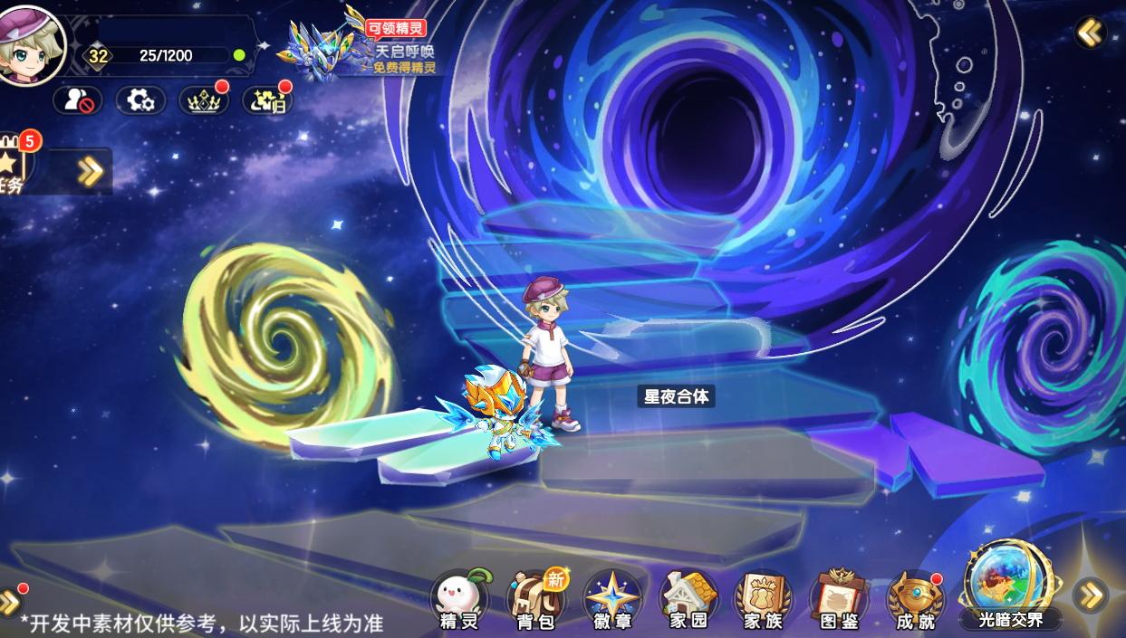 2)完成【光夜试炼】后,可通过【星夜合体】,获得合体精灵——星夜(本次合体不会消耗合体所需的精灵)。