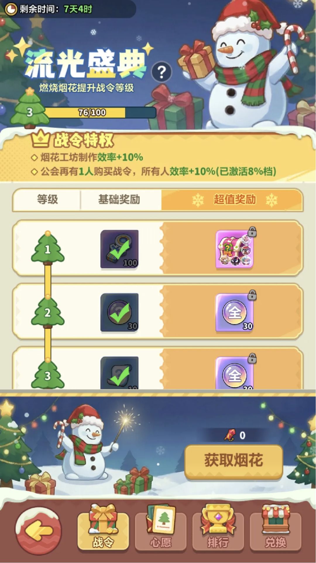 2、战令满级后,再次燃放烟花可获得新年铃铛,可前往新年回响兑换更多奖励。