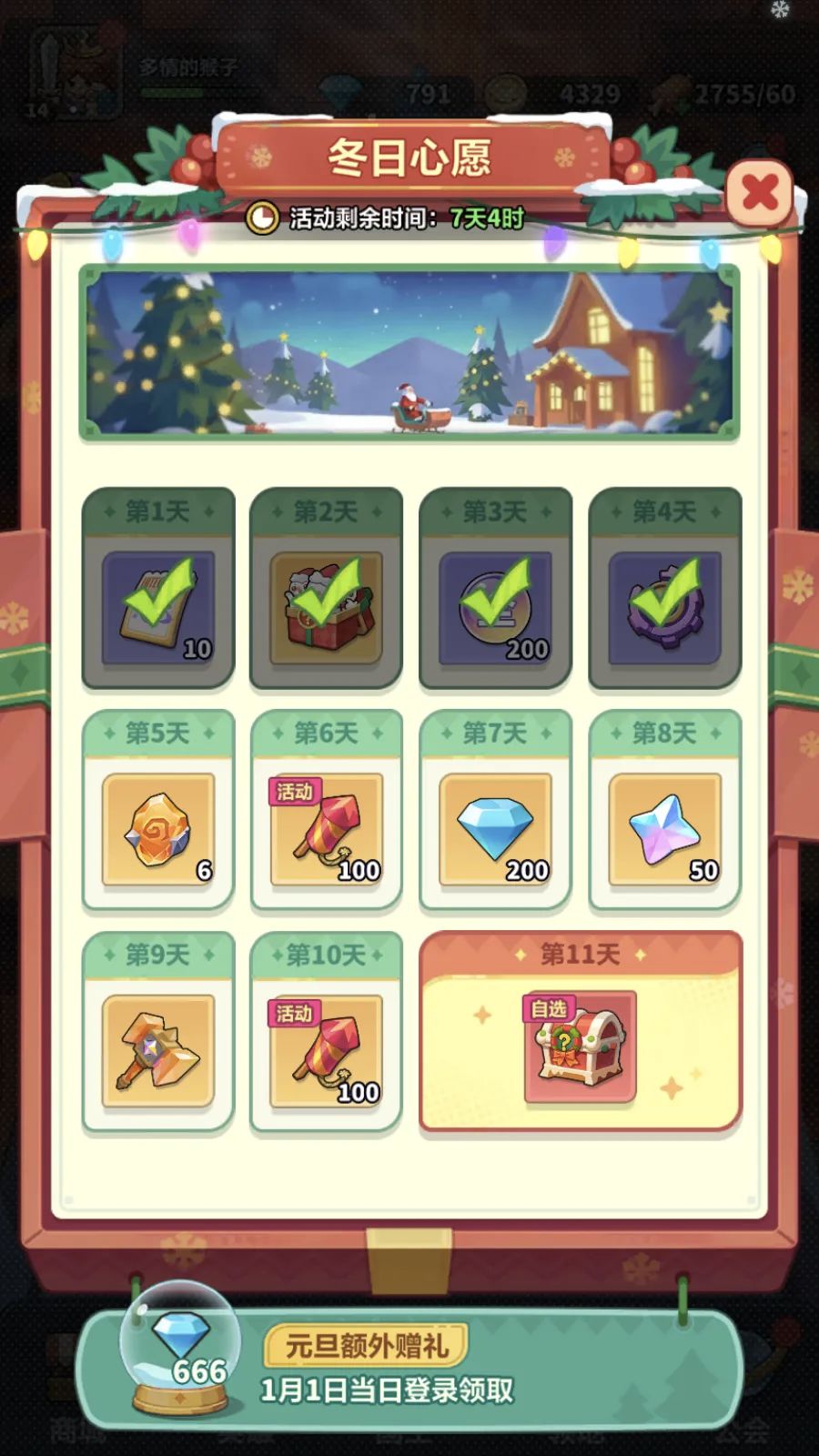 2、元旦当日签到还有钻石大奖免费领取。