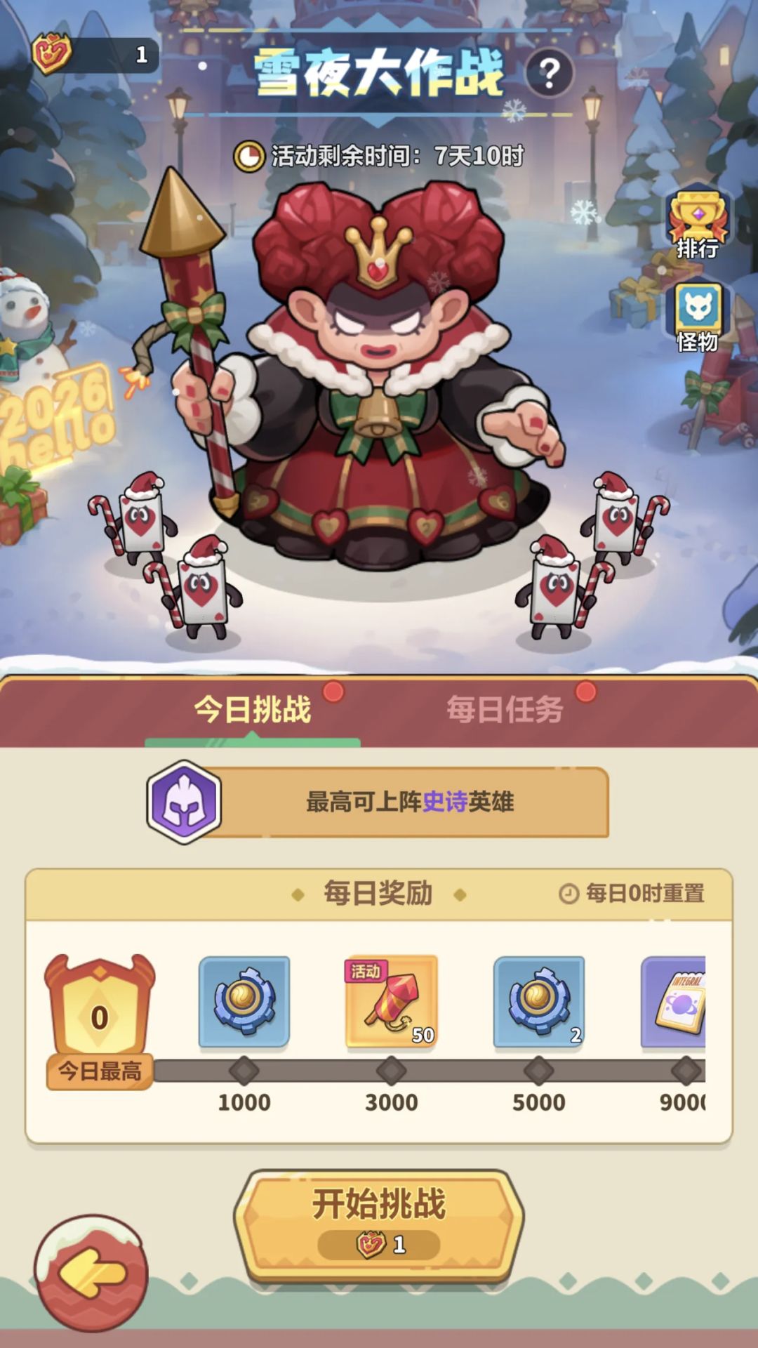 3、根据每日挑战的最高积分可获取丰富的进度奖励,奖励每天重置;