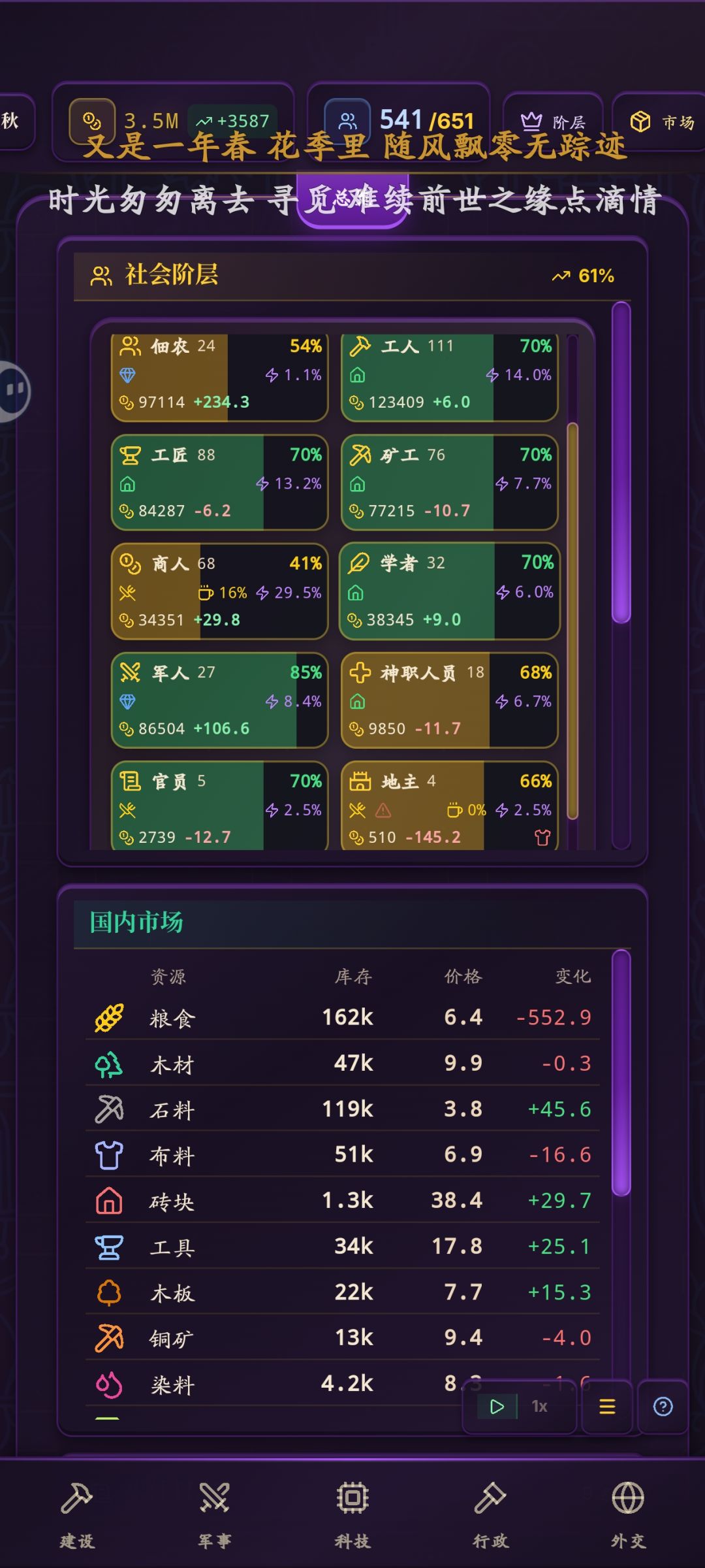 5️⃣点商人和军队,基本上3-5个够用,不要太多。不然生产力会不足。注意学者满意度,给他们补贴就行,到奢华以上,即使日开支是负的也没关系,但不能负太多,-2-3都没问题。