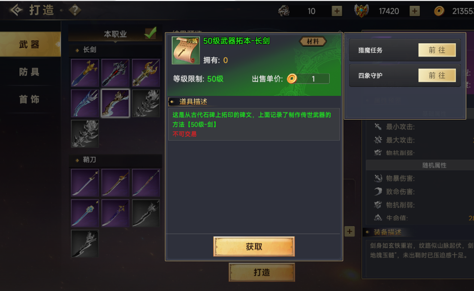 为了打造公平竞技,给玩家带来更好的游戏体验,我们将装备打造材料:拓本、基础材料、神之印分别投放进入游戏副本、野外Boss、野外怪物挂机当中。