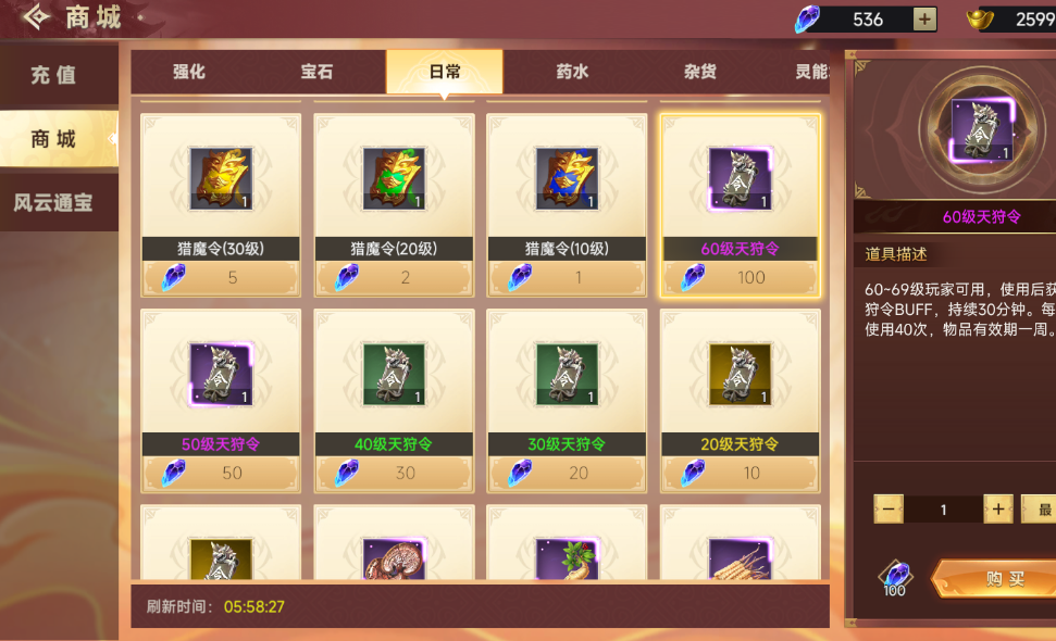 开发阶段,天授令仅能通过商城灵能水晶进行兑换