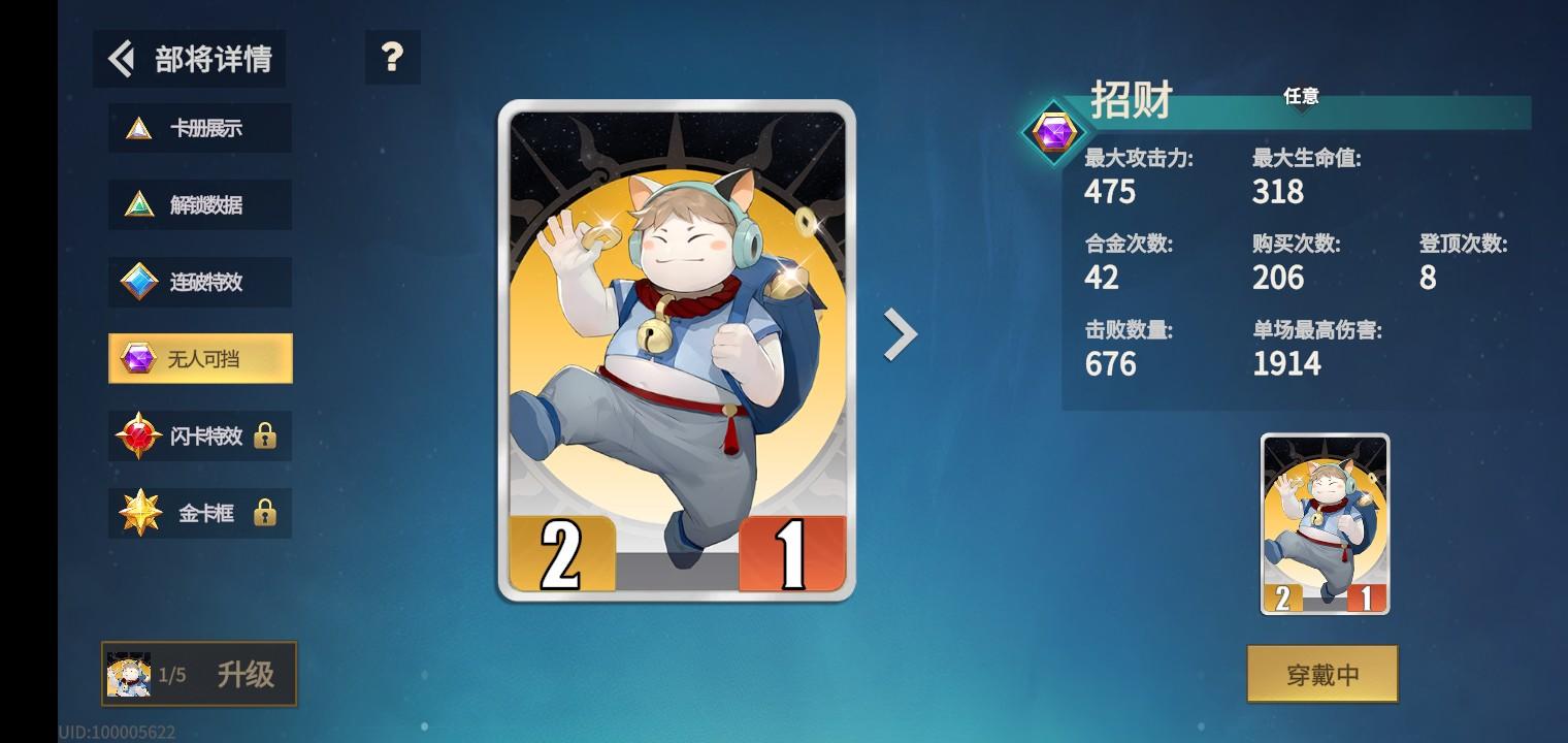 我知道大多数人用完招财就扔了,然而你要记住,它是任意阵营,同时吃到不屈+屏障,最关键的是,它1星,前期就能刷到。