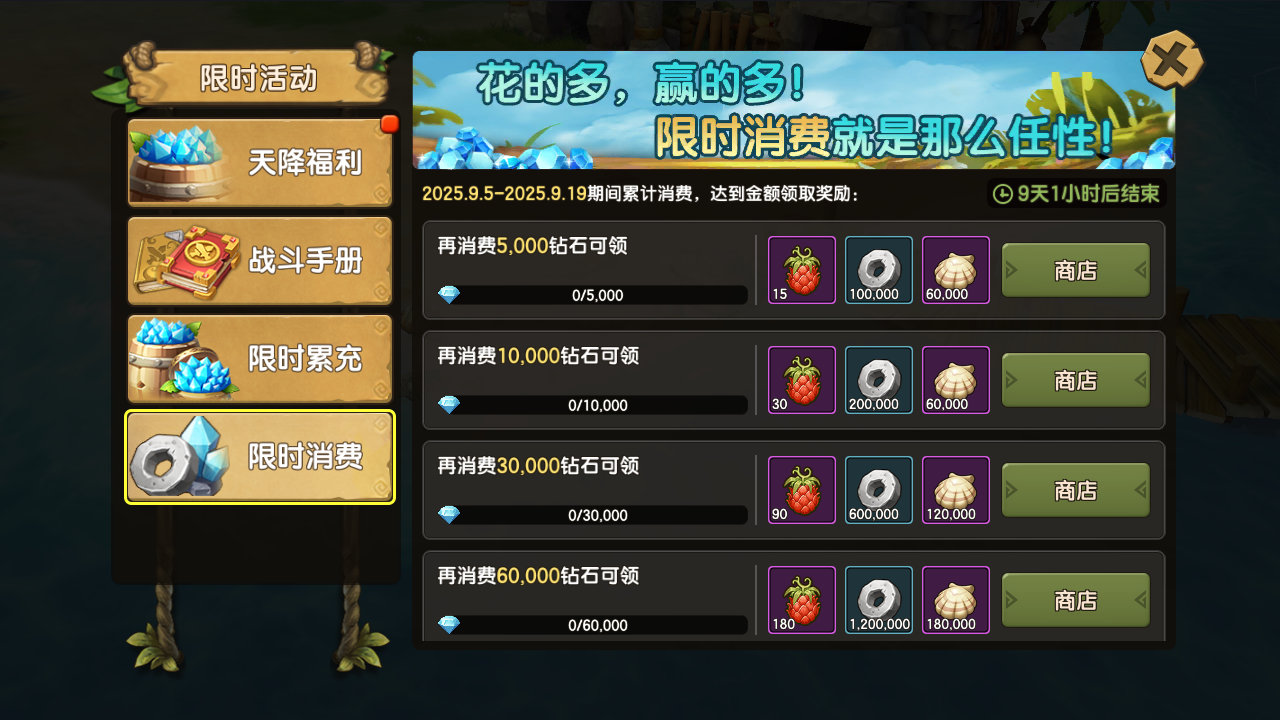 5.维护后 至 9月19日6:00开启【限时消费】,参与活动消耗对应档位钻石即可获取相应奖励,详情: 【限时活动】限时消费赢好礼