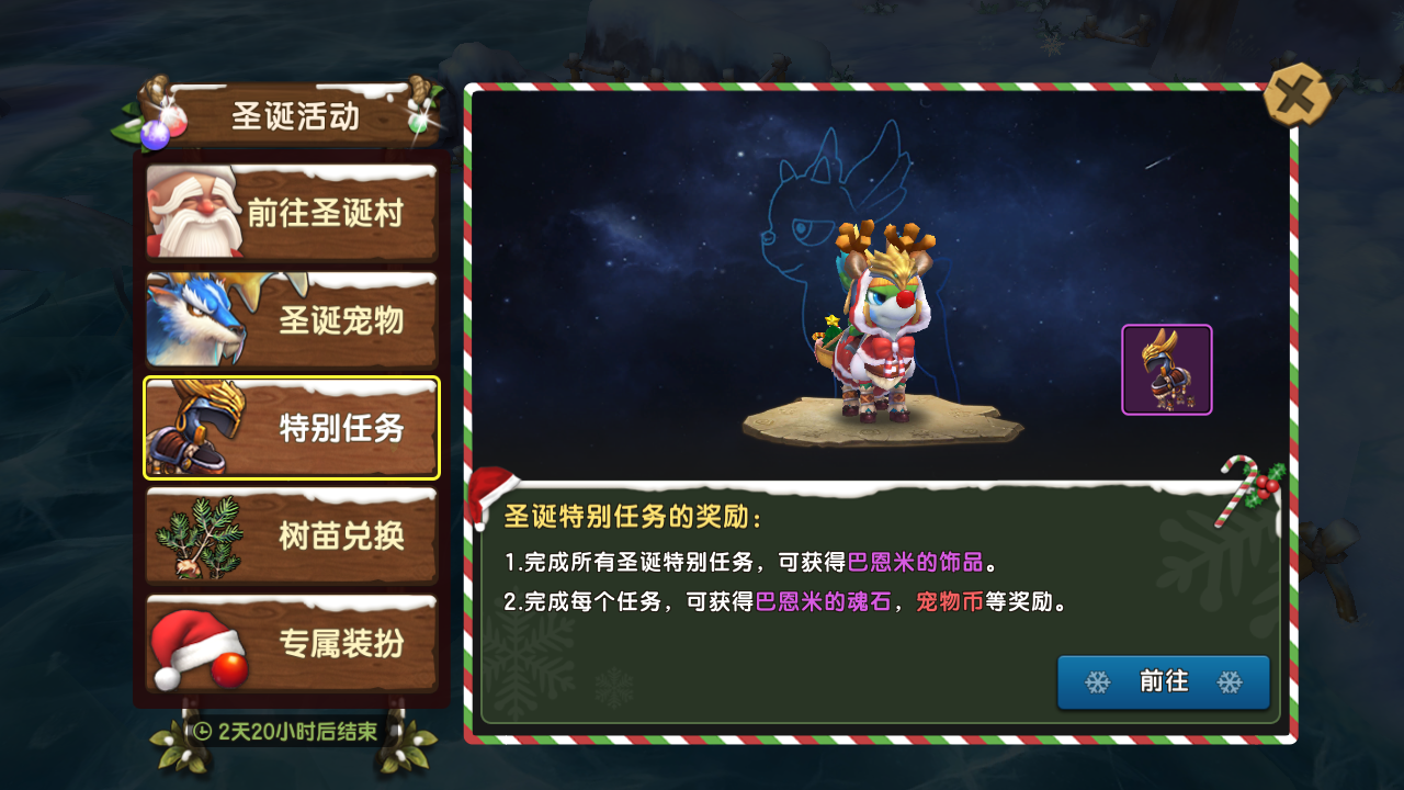 活动期间,完成圣诞特别礼物,可获得巴恩米的饰品/魂石、宠物改造石、宠物币等奖励