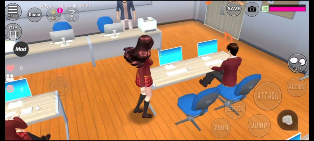 - 高自由度探索:玩家可自定义角色外貌、服装和发型,在校园及周边自由探索,与NPC互动,进行聊天、恶作剧等操作。
