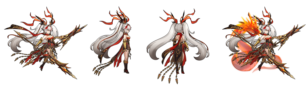 大漠深处,赤练肆虐,邪气弥漫于黄沙之间。百姓惶恐,遂以古老傩戏通神驱祟,祈愿苍天垂怜。值此危难之际,翊宁吕玲绮踏沙而来,金甲辉映日光,长戟破邪斩妖。她以无畏之姿涤荡邪祟,将赤练擒灭,还沙漠一片安宁。百姓感其恩德,颂声如潮,将她的事迹传于大漠长河之间。