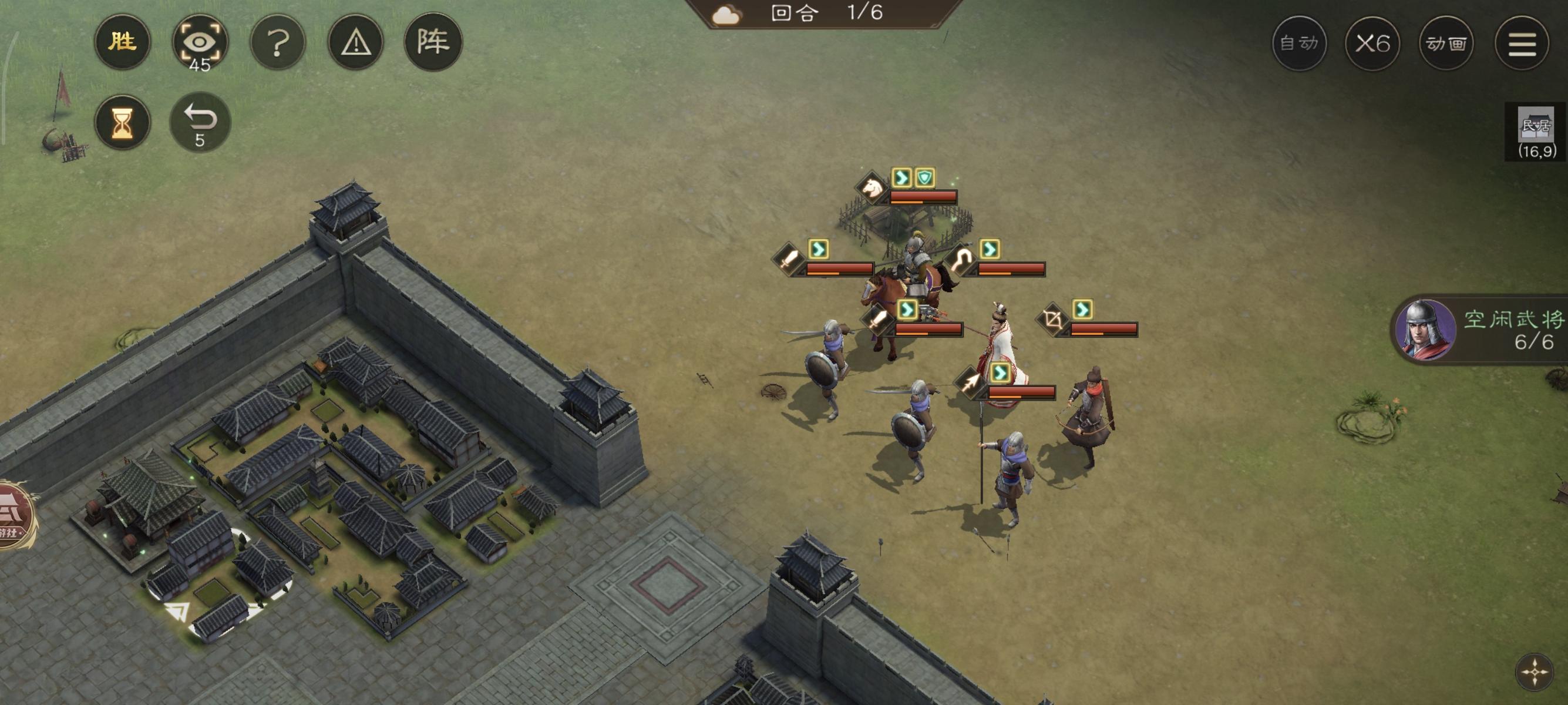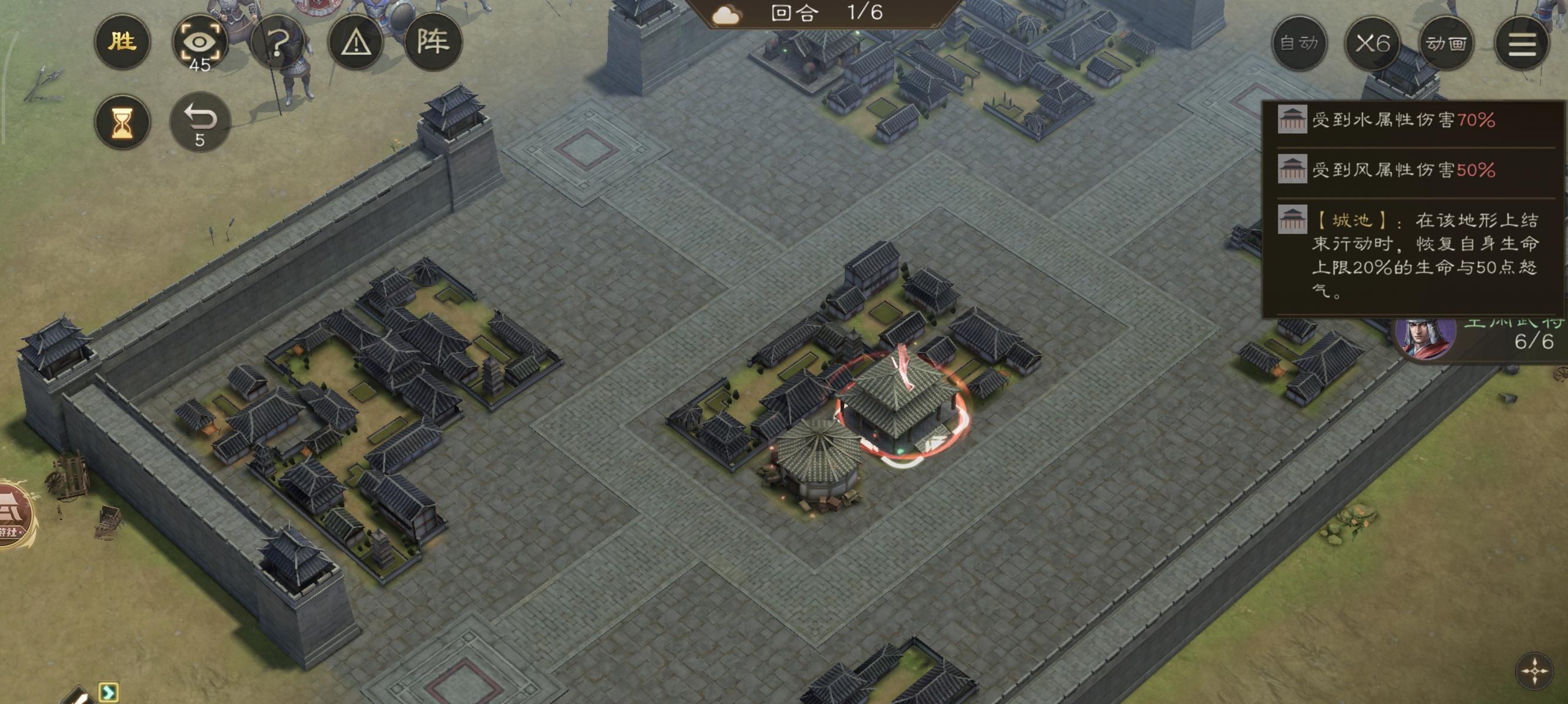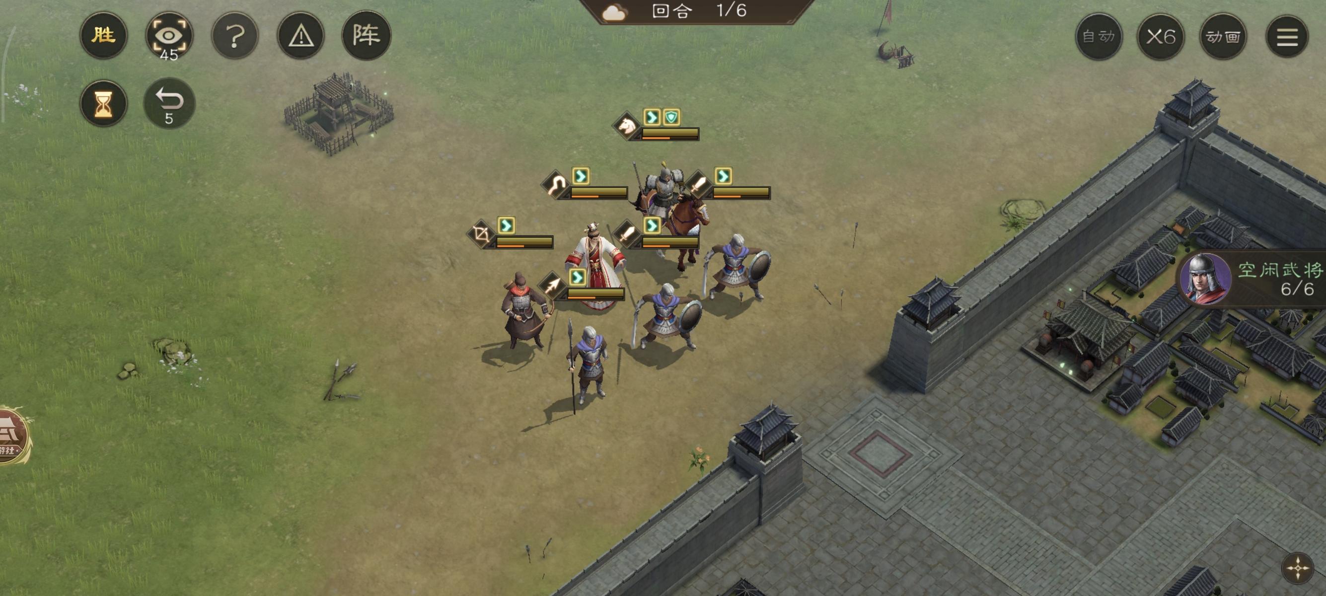 第六回合直接结束!由于我军步兵在城池内防御最高,因此也不怎么会被攻击