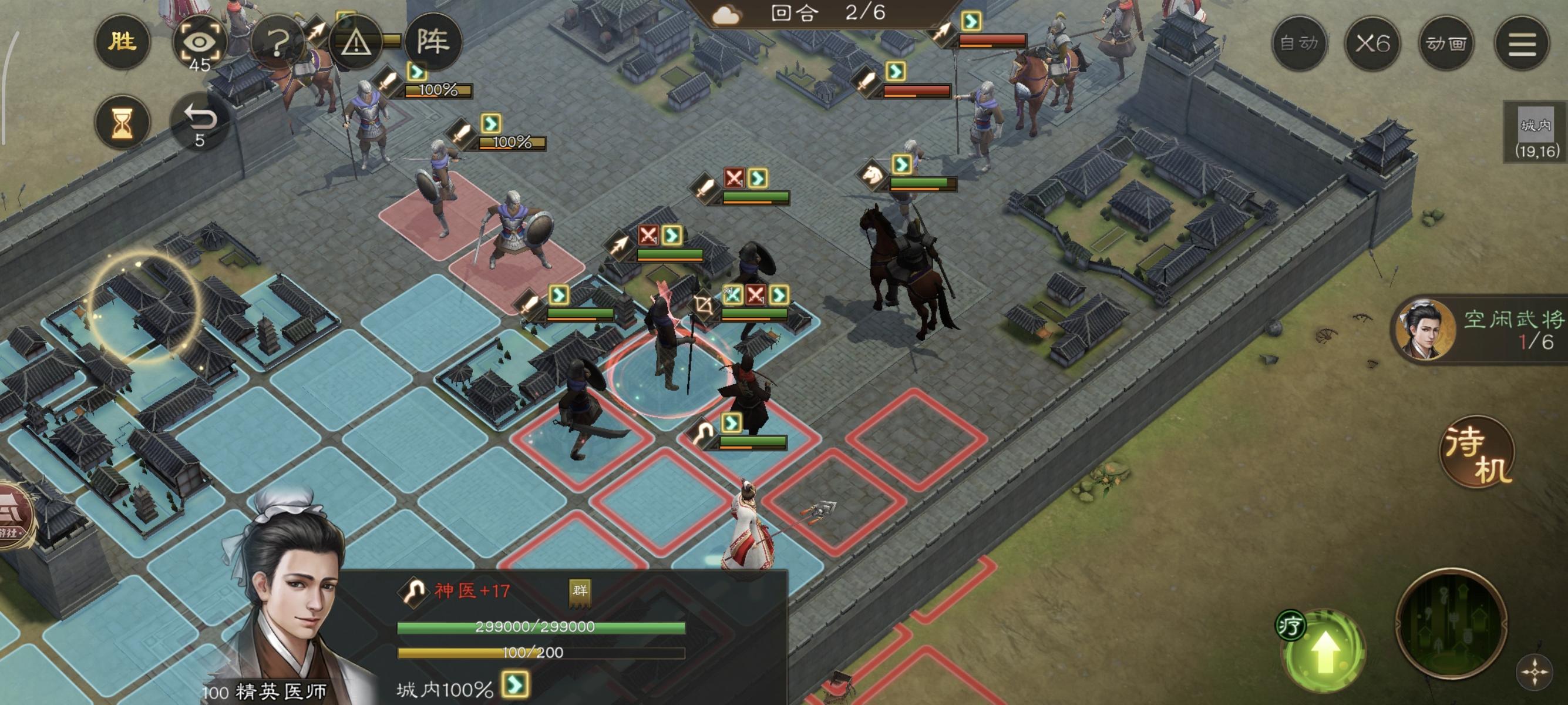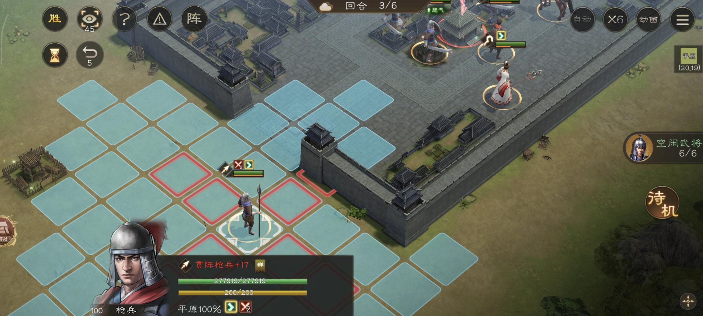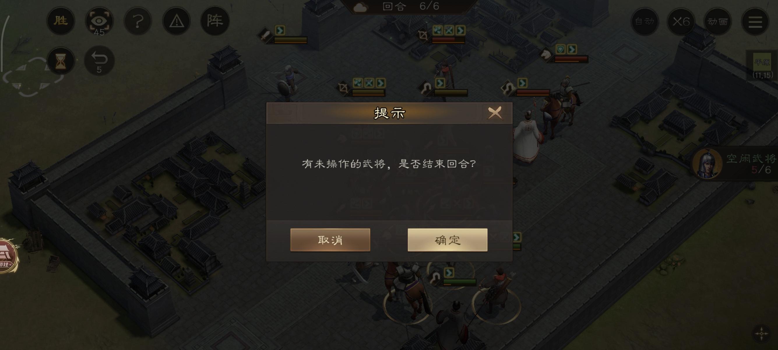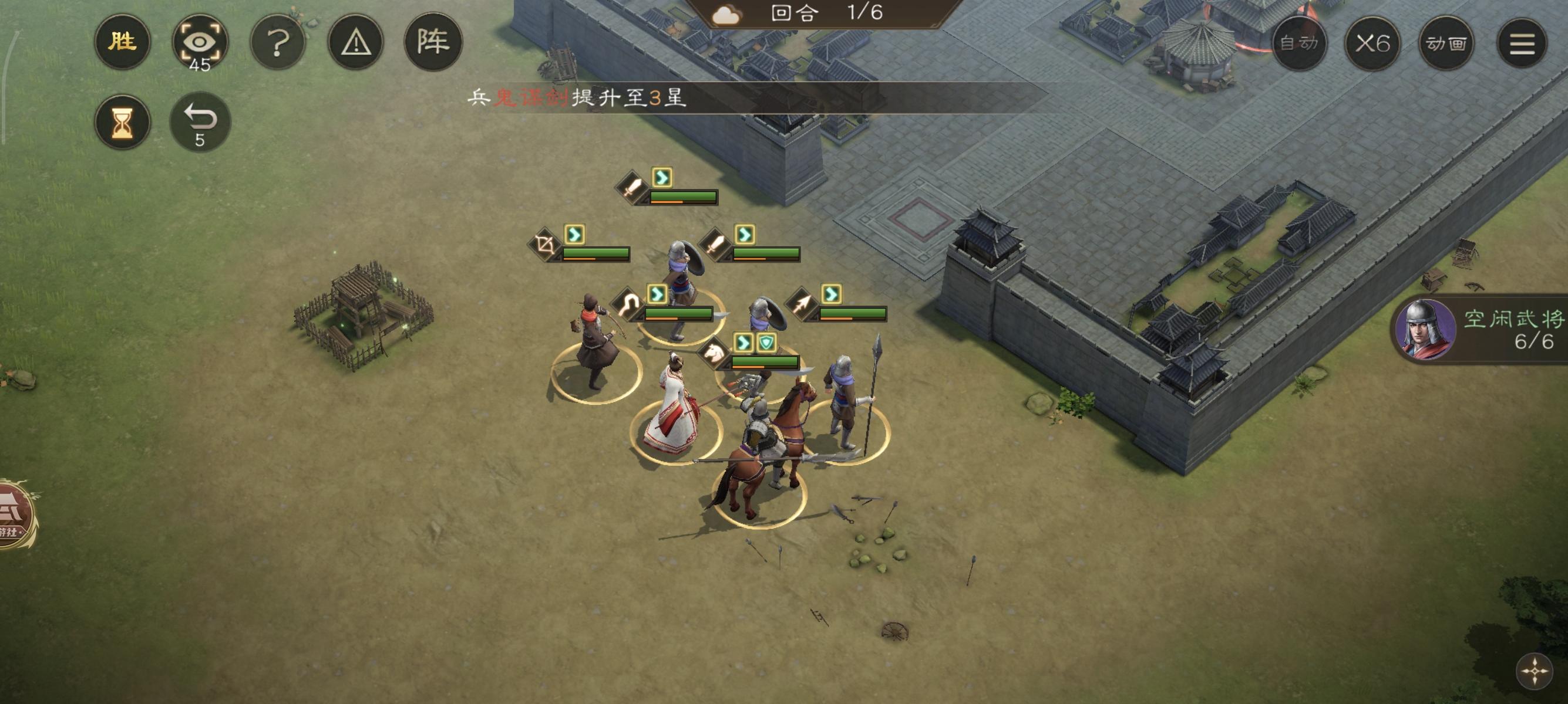 第六回合直接结束!由于我军步兵在城池内防御最高,因此也不怎么会被攻击