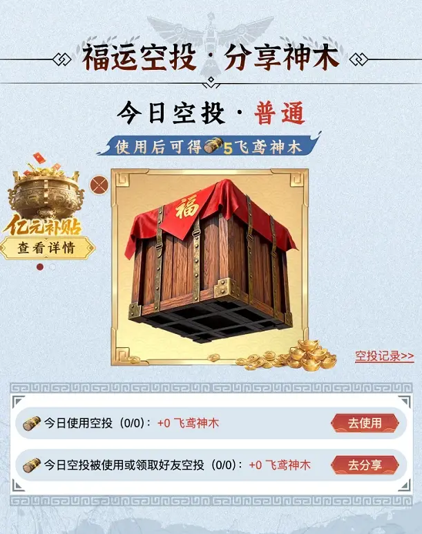 ●完成分享或使用好友空投,还可再领5点「飞鸢神木」积分!