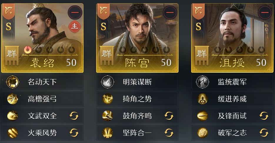 通过沮授和陈宫的双辅助提高怒气,来加速主将技的释放。