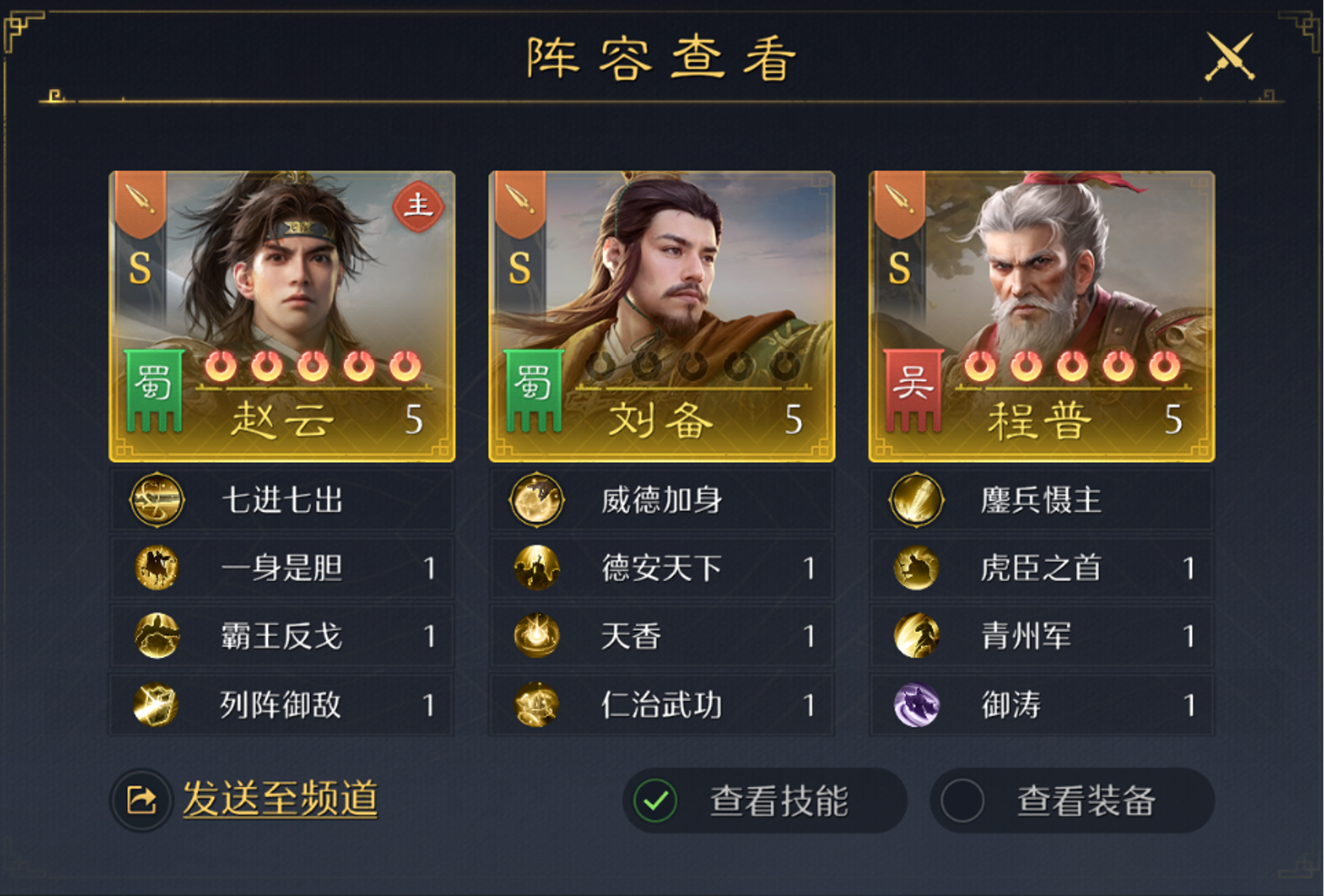 主要的代表队伍:三仙盾,周瑜火烧弓,桃园枪,诸葛沉默弓,孙尚香队等
