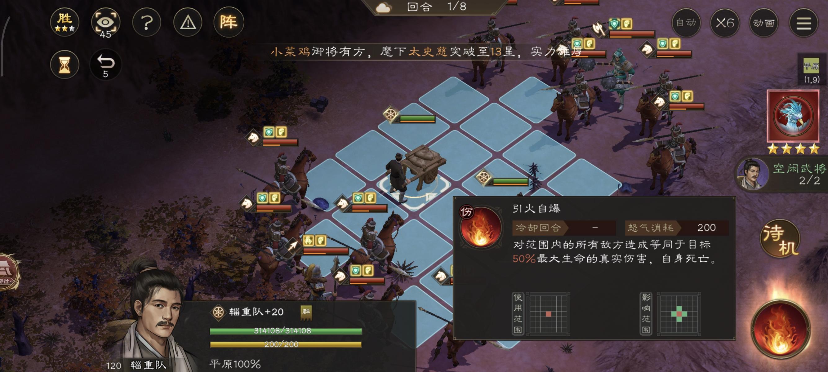 第二回合可以开始打扫战场了,吕布,诸葛亮和周瑜放3个大招!