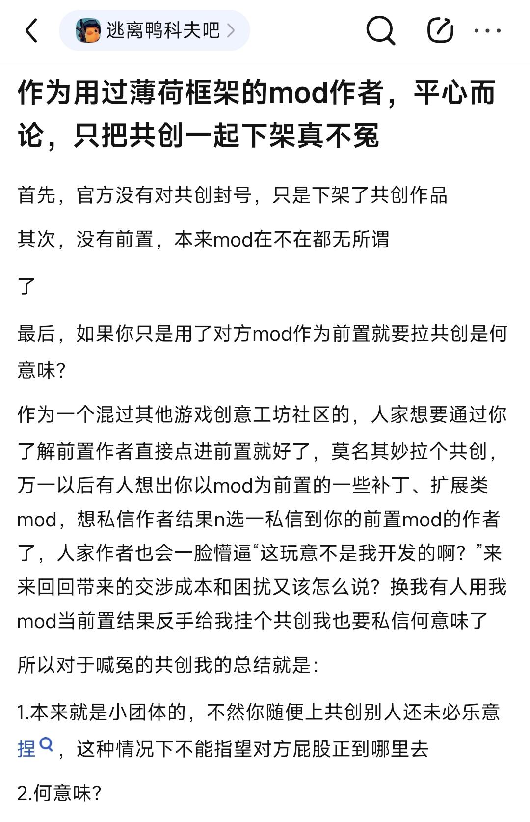 有采用过薄荷框架的mod作者对此事发表看法