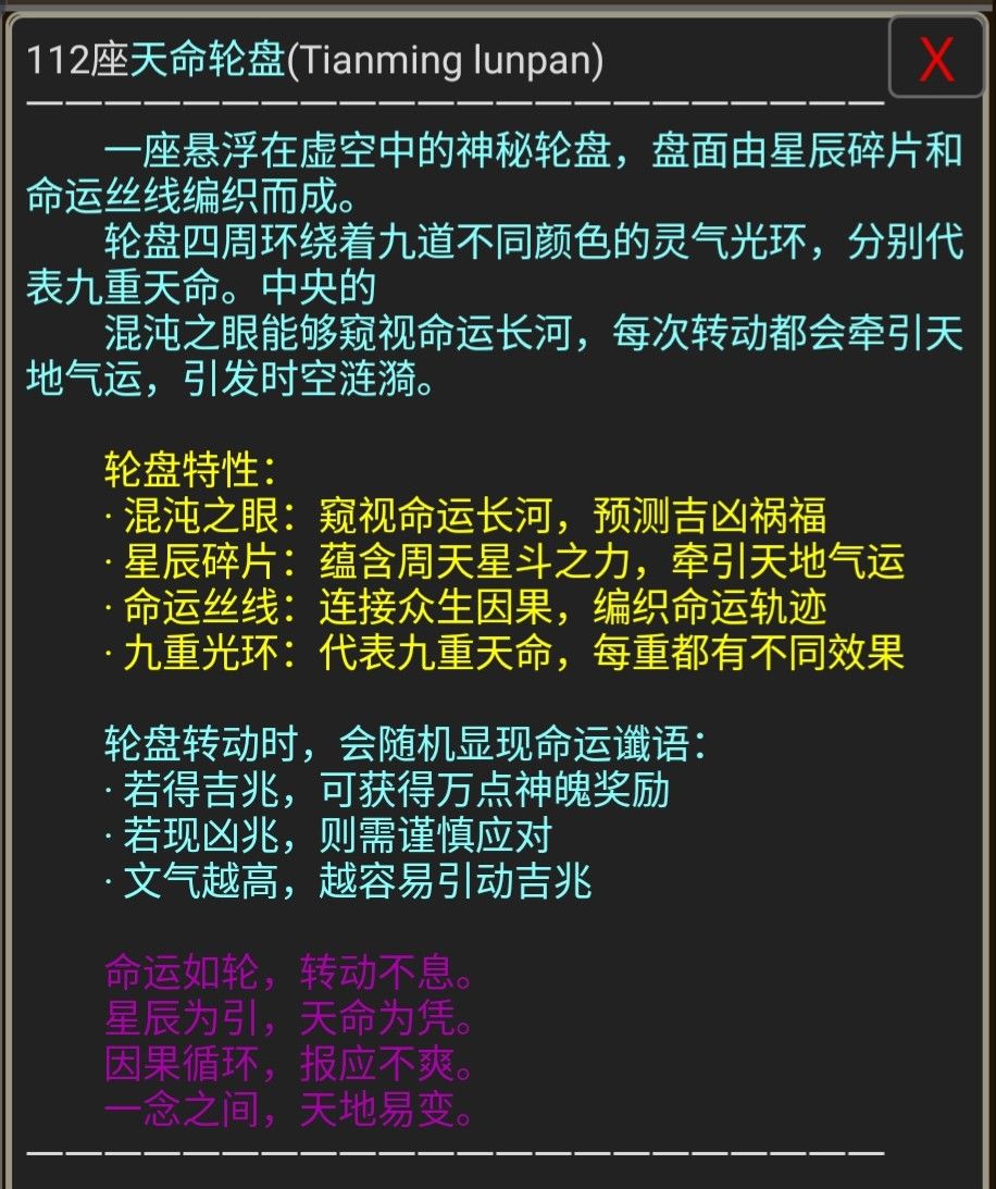 传说至宝--天命轮盘:可获得元宝、神魄奖励(文气越高概率越大)
