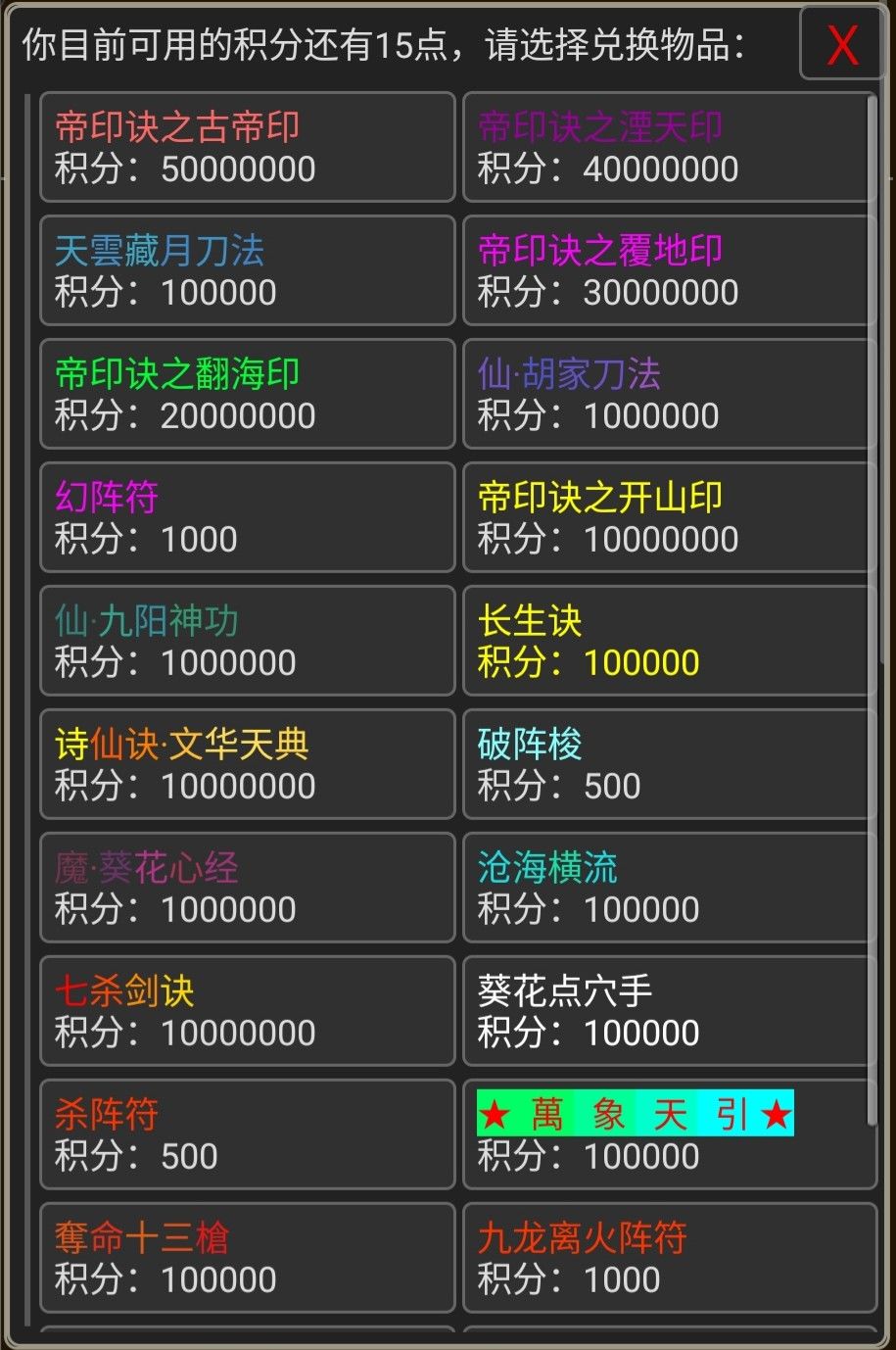 ②长生丹(每颗两分钟无敌,可叠加时间,打怪必备)