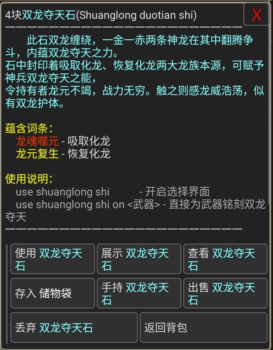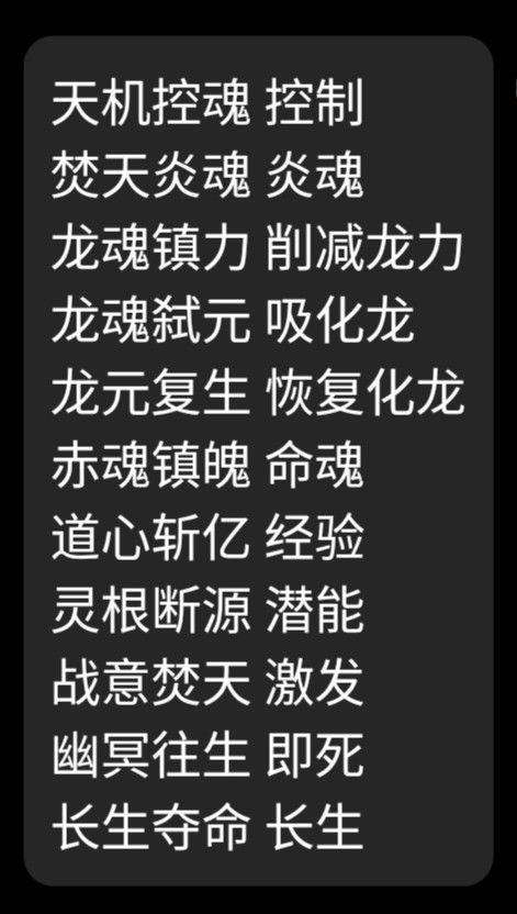 3.诗仙真君会破掉长生丹效果,因此,我们前期要以打童子跟长老为主,主要刷龙魂嗜元跟龙魂复生两种石头,刷出来后镶嵌到武器上为打真君做准备(这俩词条切记不要洗炼,会洗到0,直接镶就能用)