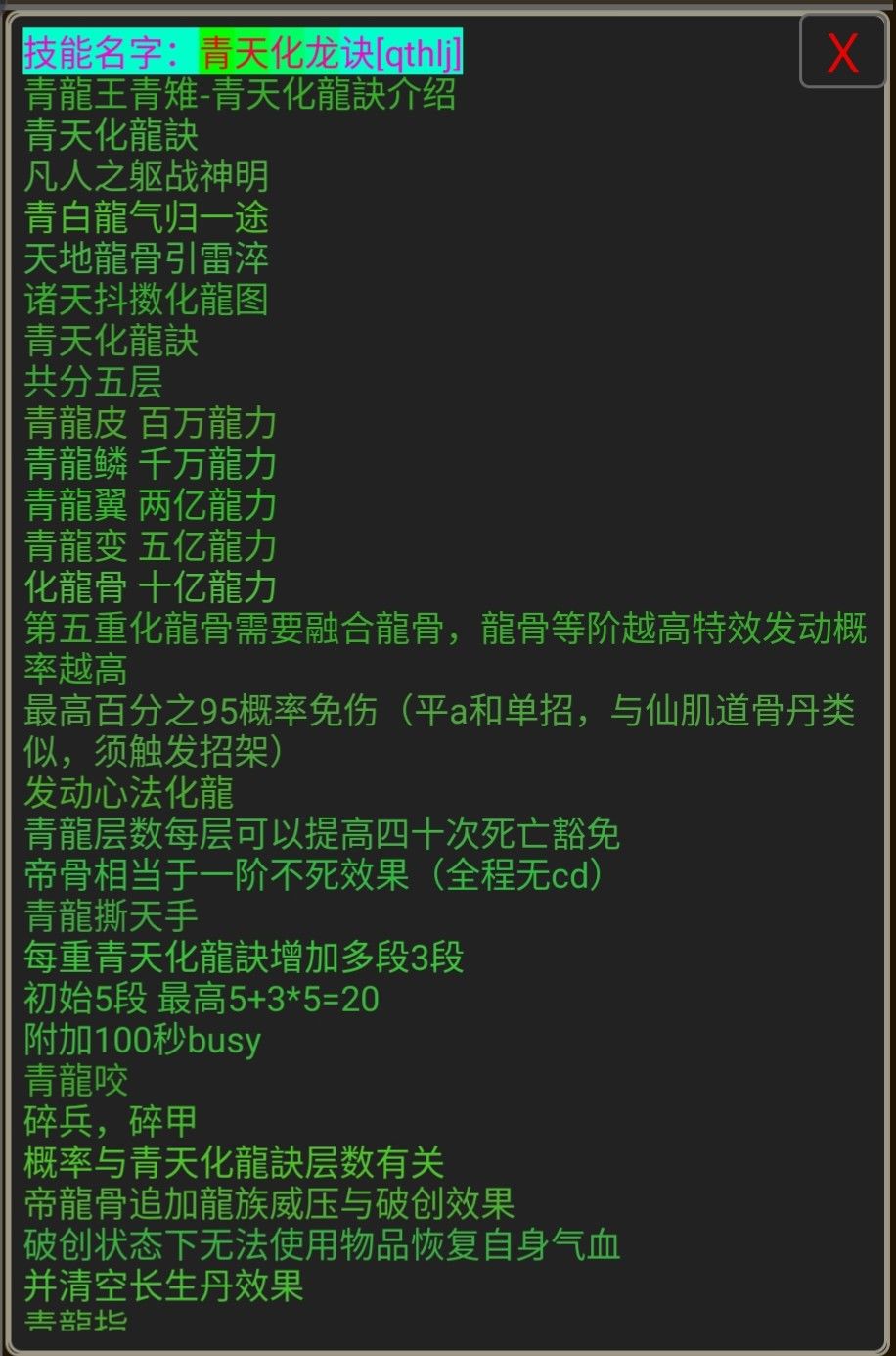 ⑦内功----青天化龙决(微氪金类武学,目前已加强,化龙层数可免伤)