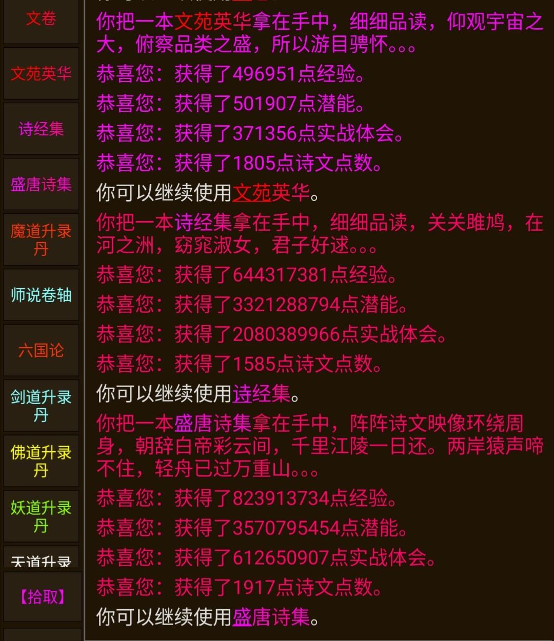 文气卷轴:提高经验、潜能、诗文点数(提高境界用)