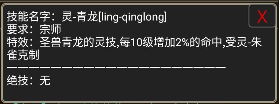 ⑤辅助----四象秘籍----青龙(必备辅助武学、师门商城获得、效果是提高命中率,注:有性格要求,商城买天性丹选狡黠多变即可。)