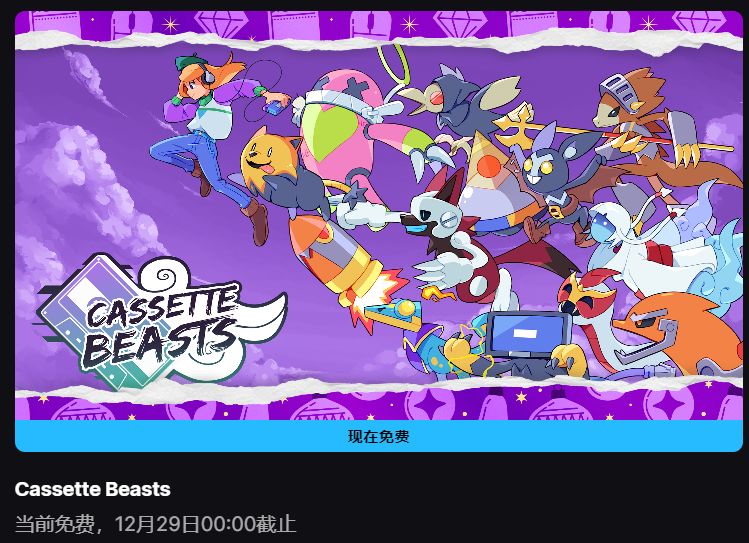 Epic 年度圣诞限时免费送游戏活动持续火热,官方正式揭晓福利第11弹,开放世界RPG《磁带妖怪》惊喜登场,12月28日限时一天开放入库,玩家需抓紧时间解锁,错过再无免费机会。