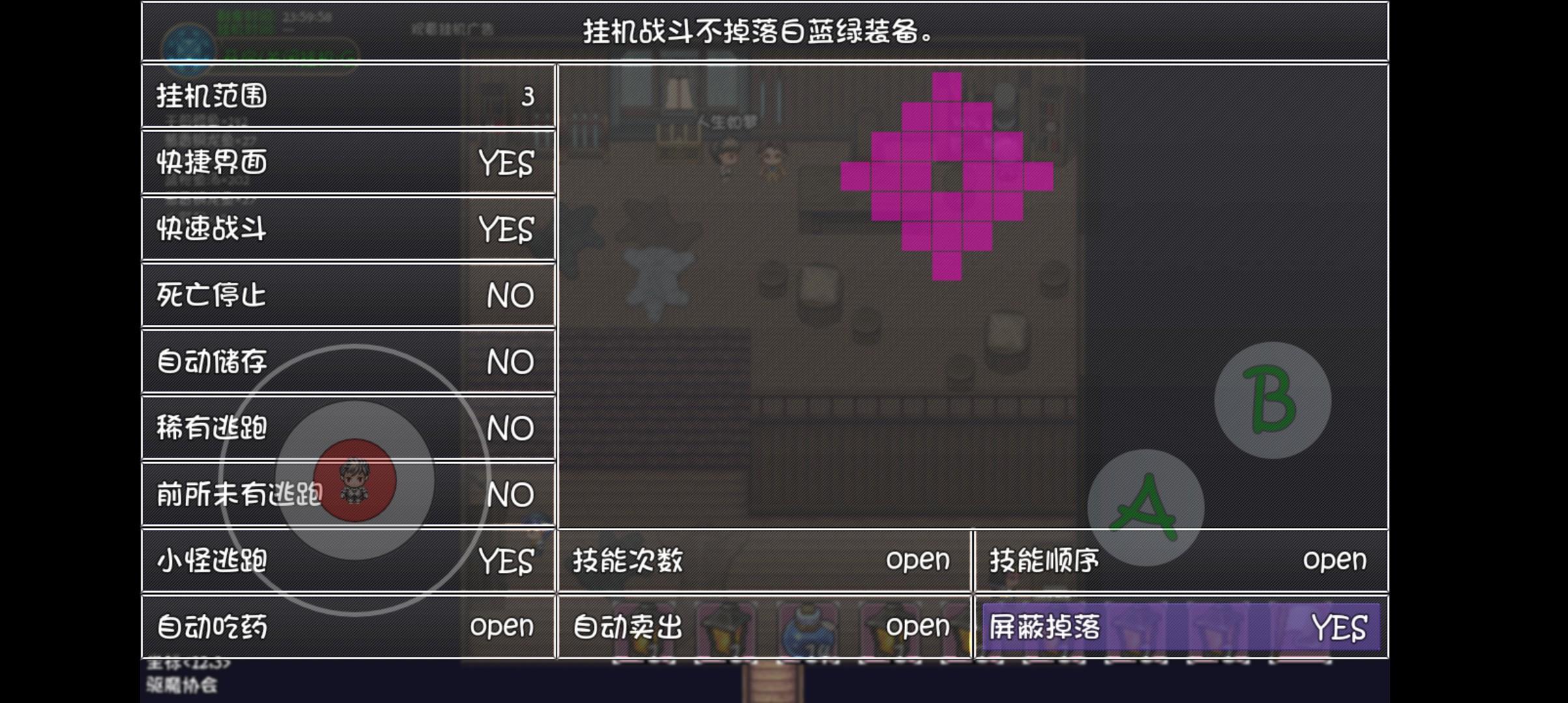 个人觉得影响挂机的是自动存档(这个会卡一下估计存多了(10分钟/次)会闪退),还有那个伤害动画/掉落动画/屏蔽掉落这几个!!!