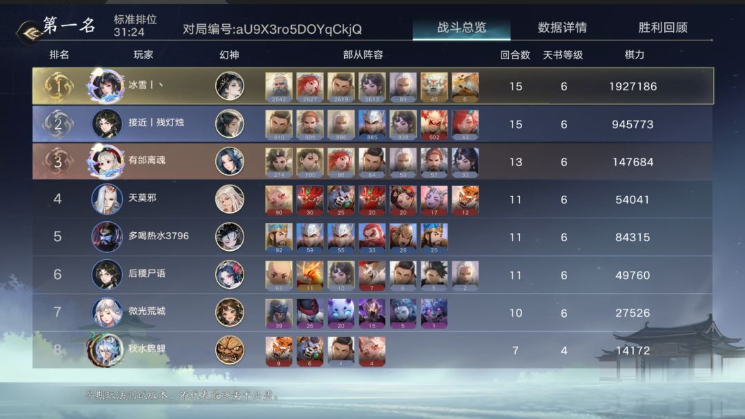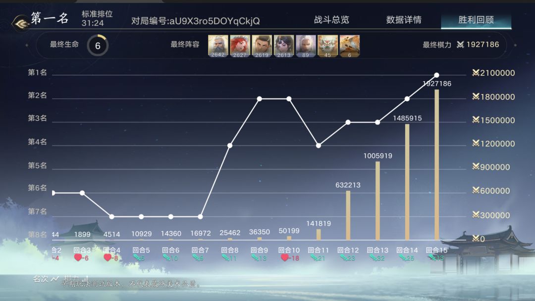 白卦加中立过渡,整体延续强力单位配合中立经济的通用策略,白卦过渡的重点是摇铃的成长,是阵容成型前的中坚战力,可以一直打工到成型