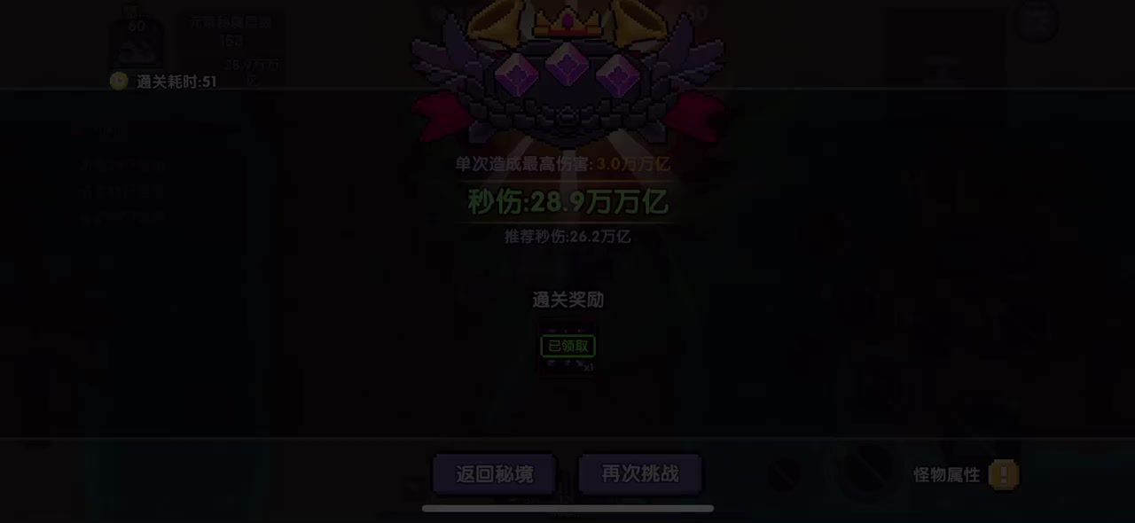 如果第55怪那一波不能秒成绩就变成57秒,如果三刀油过不去,上个爆伤血瓶可能会有机会51秒