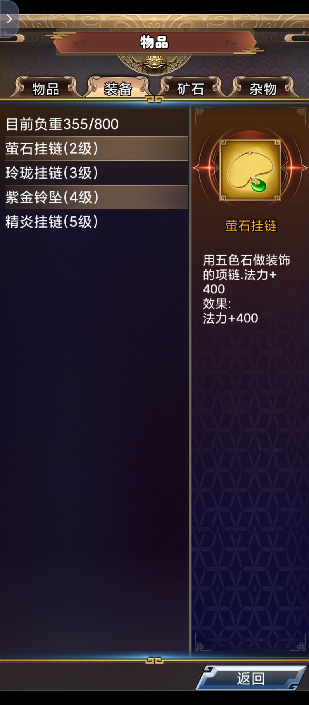 童子处的百级装备项链是无属性项链