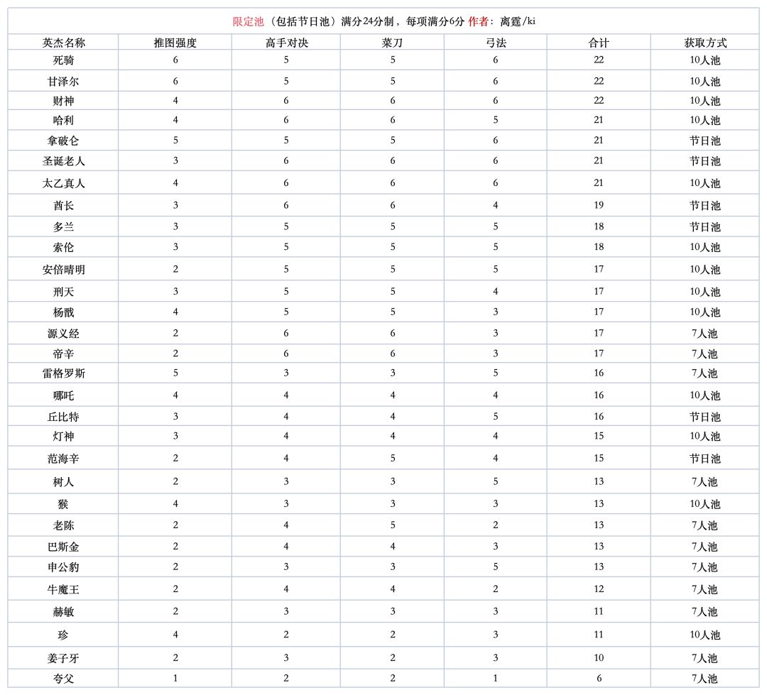强势好用的英杰一般都比较通用分也不会低,排名为了直观,也要根据目前阶段来对照选择,有些英杰比较偏,总分不高但可能更适合你。
