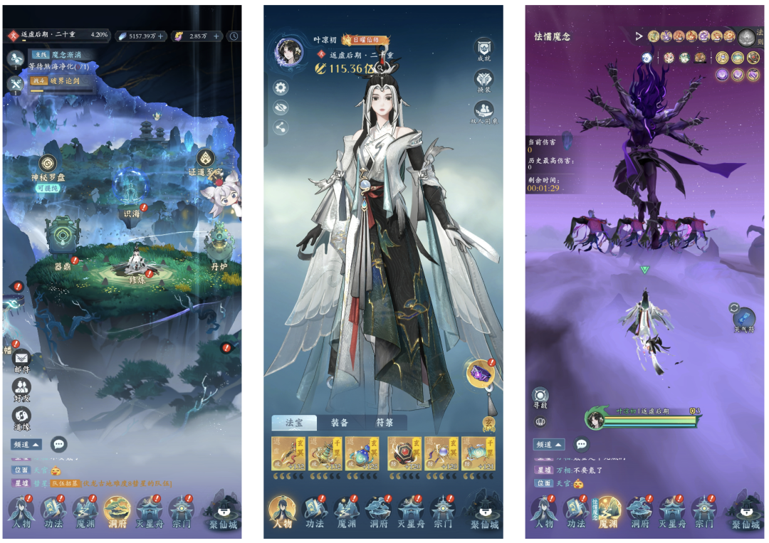 客观来说,《问剑长生》是一款3D御剑放置修仙手游,很多人常把它叫作「3D版的《一念逍遥》」——着实,两者作为同一厂商的同类型爆款,在系统模块、养成体系等方面有些相似,而《问剑长生》的差异化,在于3D御剑飞行体验、多人同屏和动画招式演出……