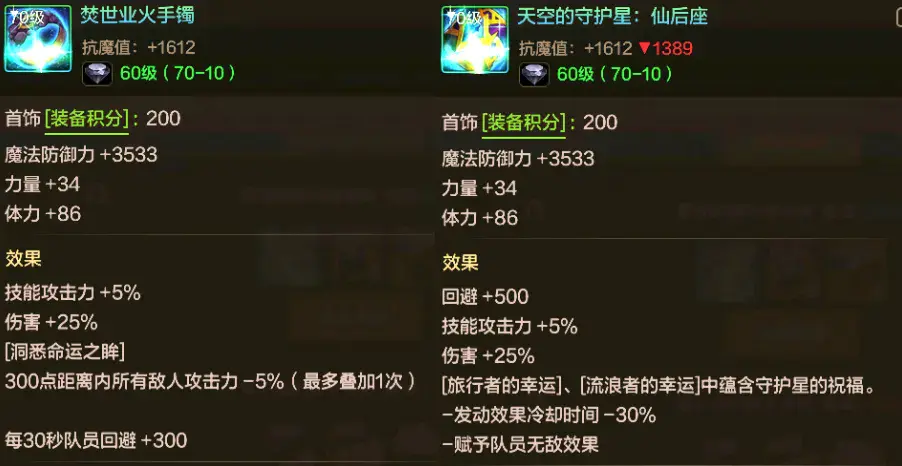 不管从功能性、还是输出层面看,这2套装备都只适合辅助职业佩戴!“意志套”为队友提供减伤、速度和回避;而“星空套”为队友提供大量属强和无敌。