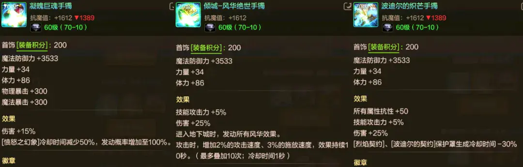 虽然说“巨魂套”跌落神坛,但也只是相对前面幻神而言,对比其他套装还是有略微优势的,如果能够凑齐一整套,也勉强可以佩戴的。