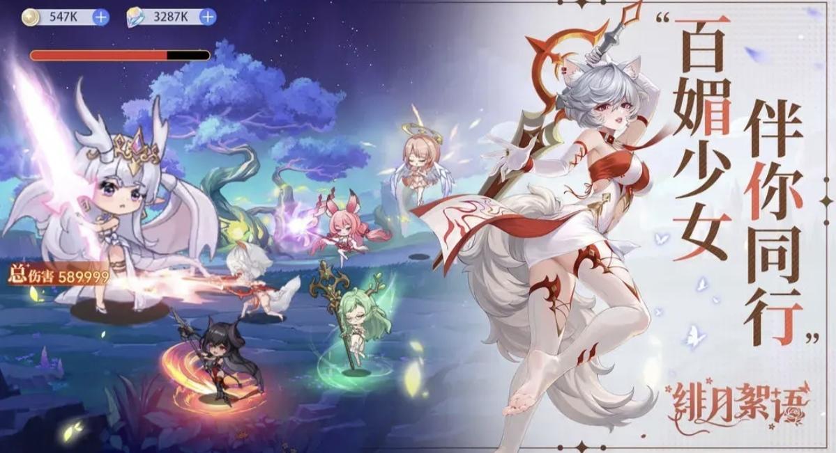 《绯月絮语》是美少女放置卡牌手游,核心是抽卡组队、属性克制自动战斗、多维养成与互动,低操作高收益,适配碎片时间。