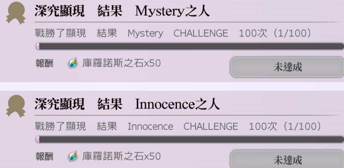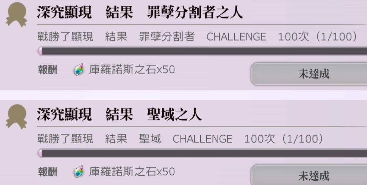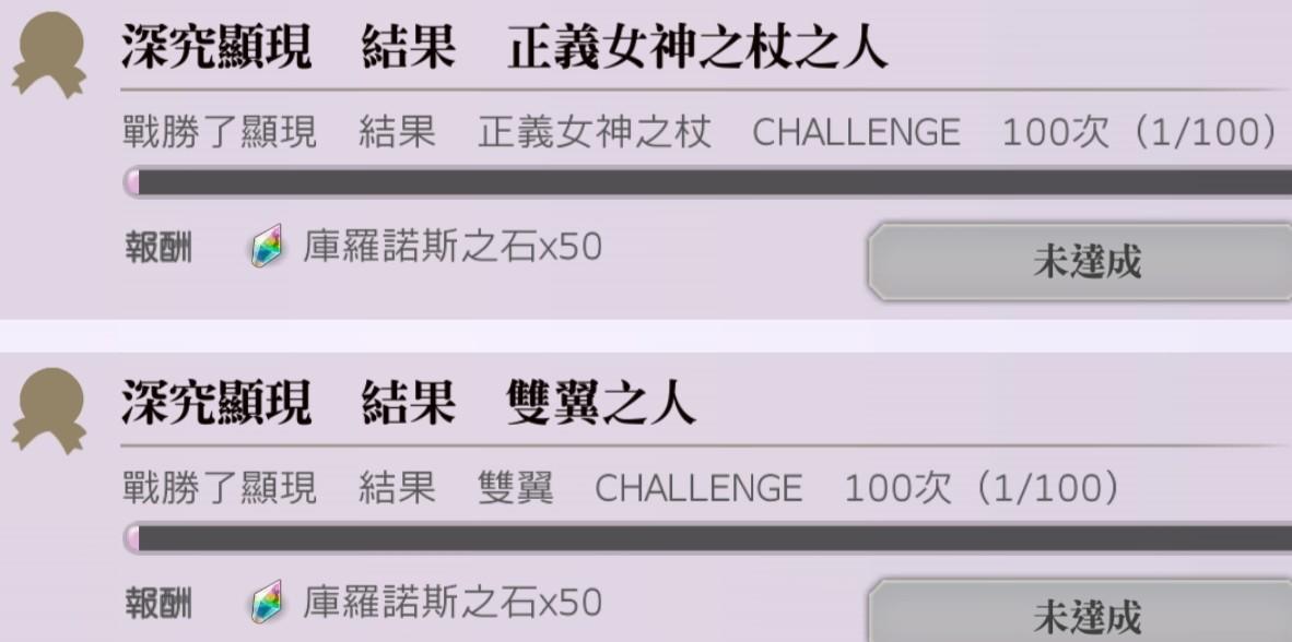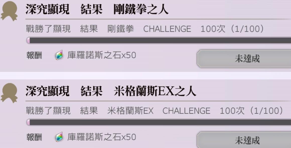 3.13.60前的新專武,也就是克勞特之前的11個角色,必須老老實實打CHALLENGE100次,雖說這設計不合理,反正不管CHALLENGE還是最低難度,打100次掛機就完事了。
