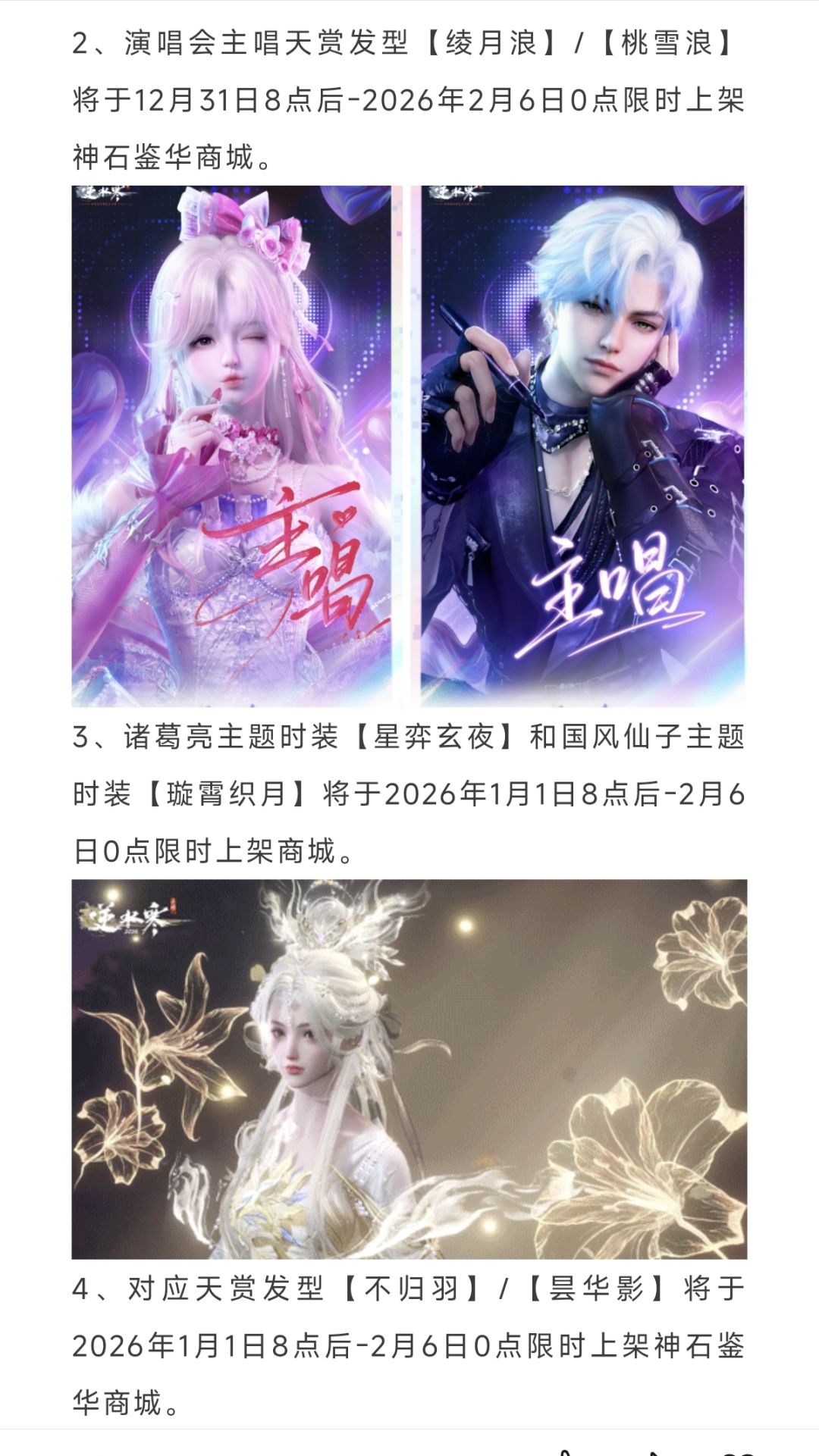 逆水寒手游下周288块演唱会新时装,诸葛亮主题时装,所有白发掉落翻倍,新天赏祥瑞【永焰炽歌】,罗彩签双倍活动!