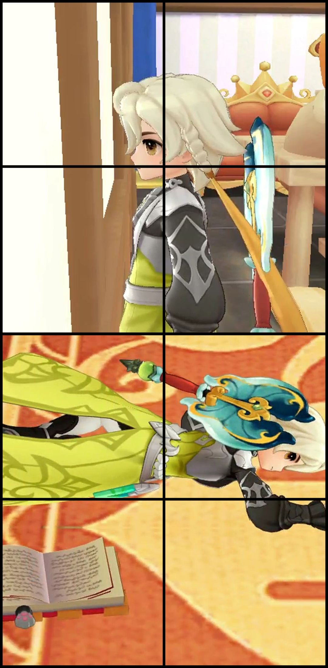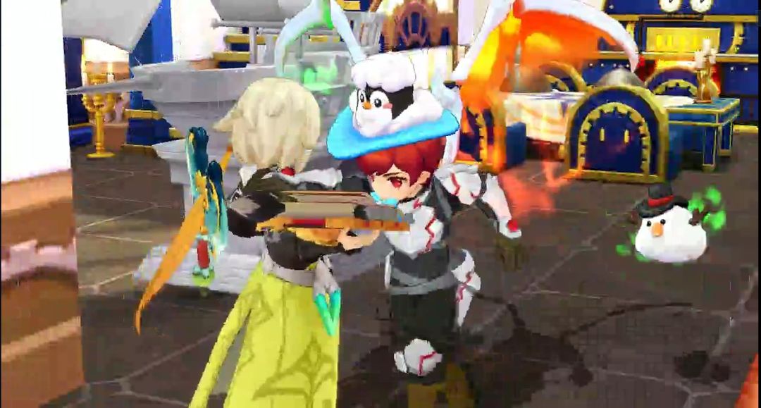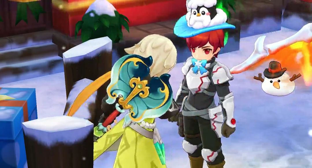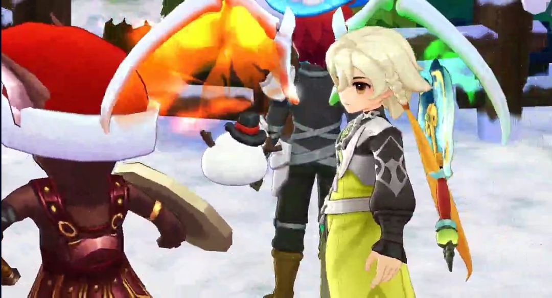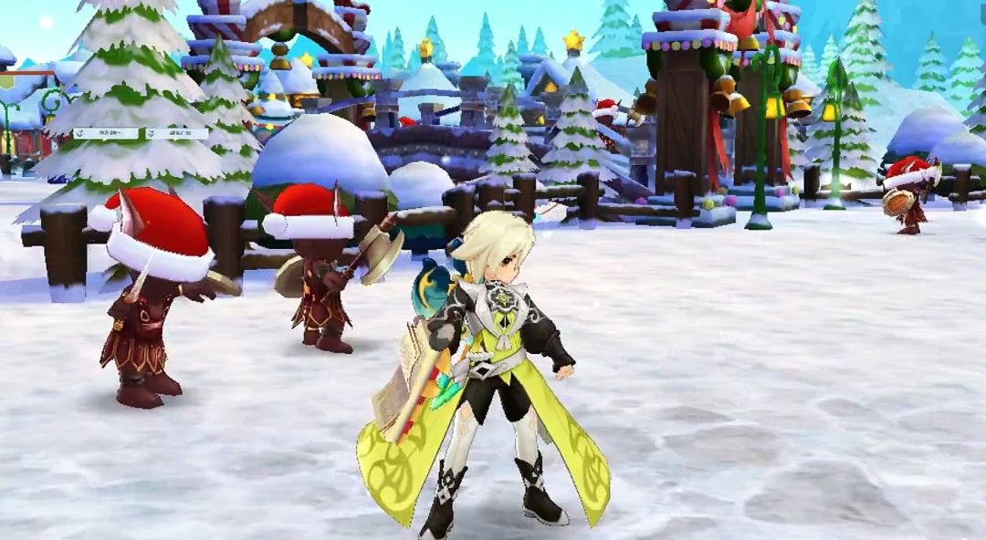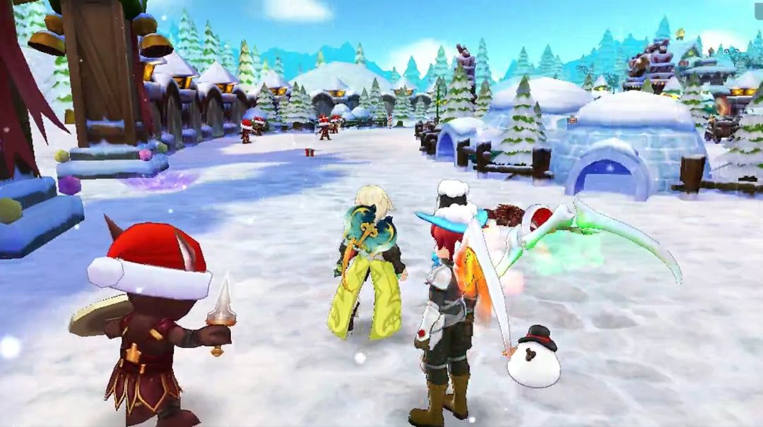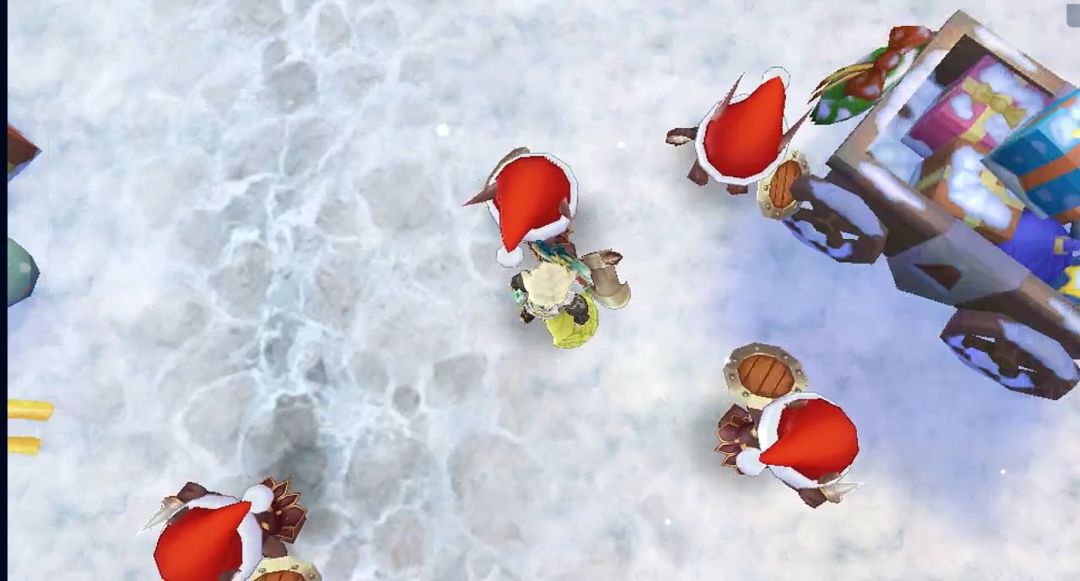 几个小魔物从角落里探头探脑地走出来,在雪地里挖呀挖,终于挖出一个小礼物盒子。那只魔物的眼睛瞬间亮得像星星,开心得在地上打滚,然后和同伴们蹦蹦跳跳地跑远了。