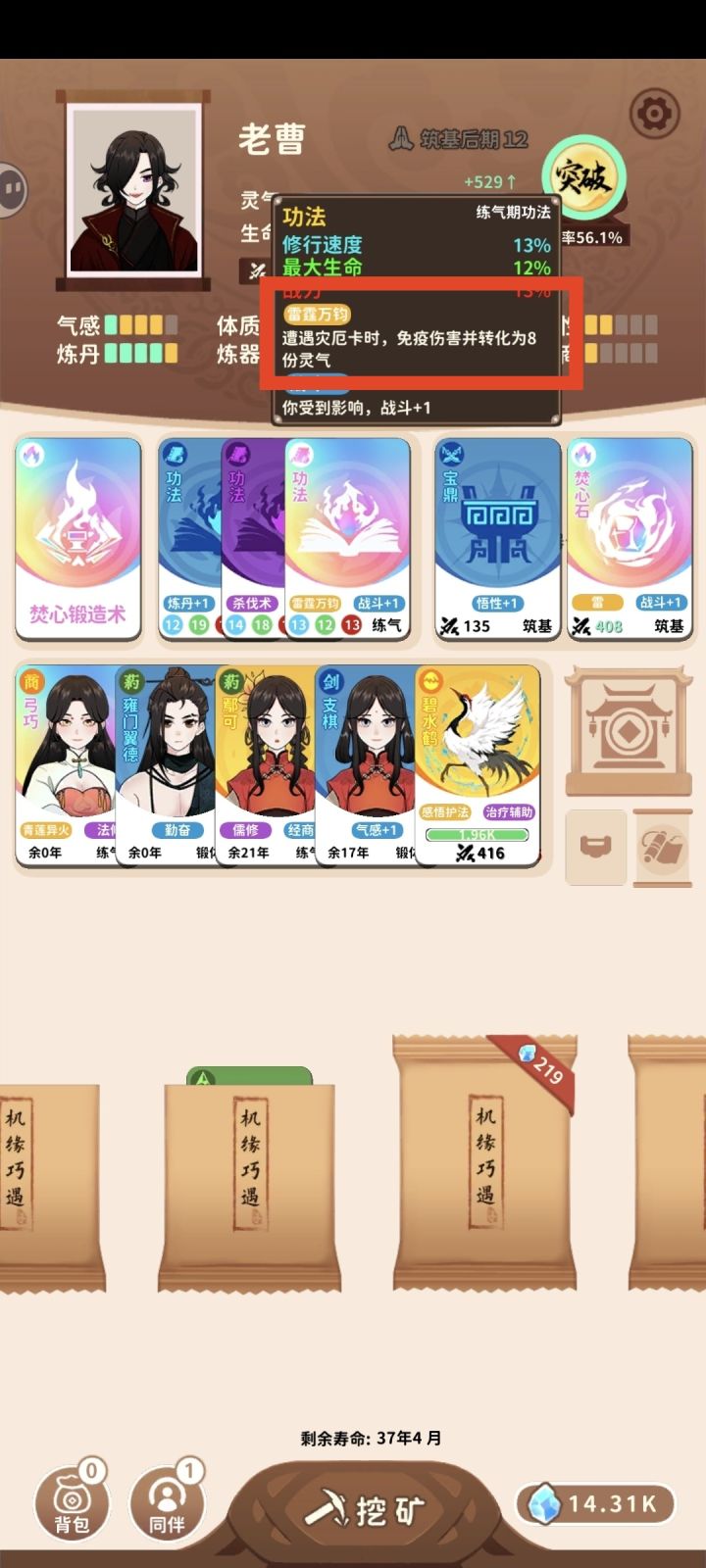 解决办法: 功法的金色词条,【雷霆万钧】(遭遇灾厄卡时,免疫伤害并转化为8份灵气)