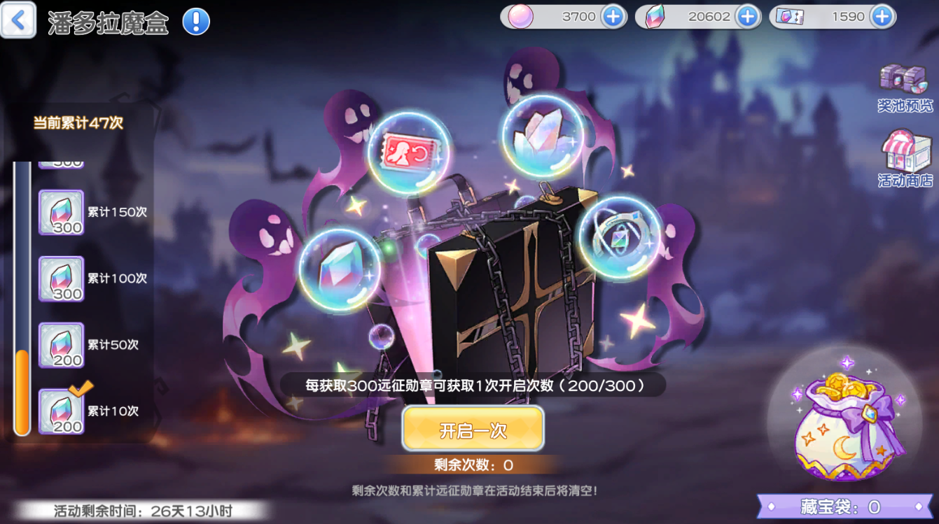③成就幸运池也就是潘多拉魔盒,直接有就抽。右下的藏宝袋需要氪金。活动商店处先换祭石再元素相关道具。注意一点和全服类型潘多拉魔盒有很大不同,而且这个活动珍珠会过期且应该不通用