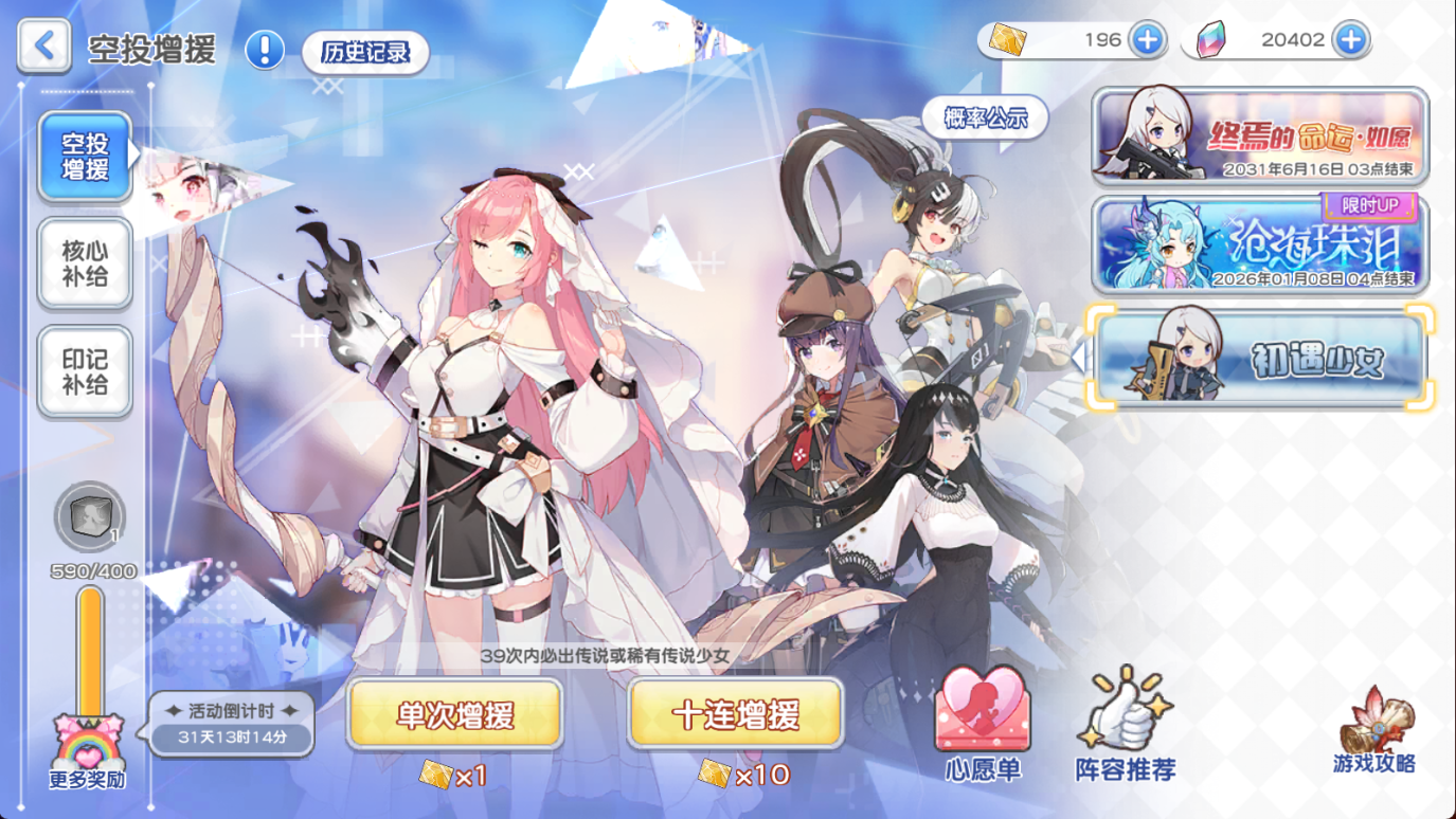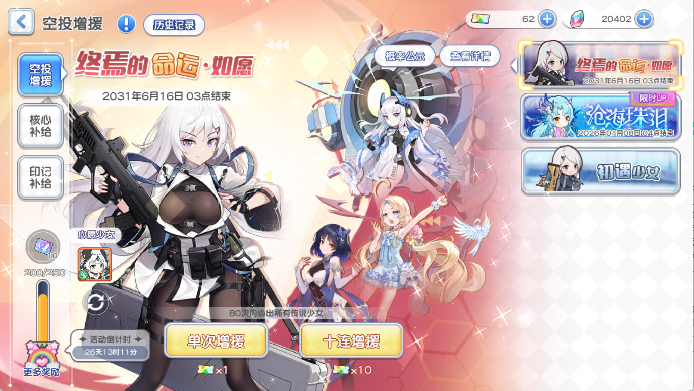 1.常驻角色和核心池改成了40抽内必出心愿单,角色池累计抽80/160抽开启第1/2个心愿单,每天心愿单抽完可收手,此时我的少女常驻票非常富余以至于无心愿硬抽了上百抽,但还是非大氪不建议无心愿硬捞。
