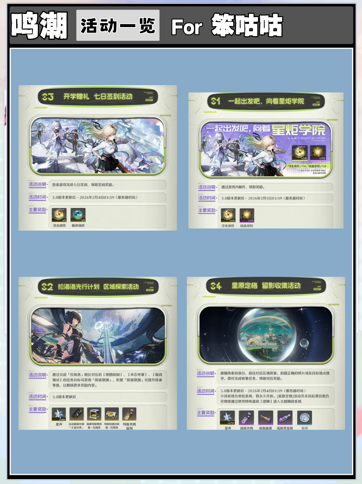 新版本的第一个周末,这里给大家简单总结了一下3.0版本抽取的一些建议,还有可获取的星声和各种活动福利!