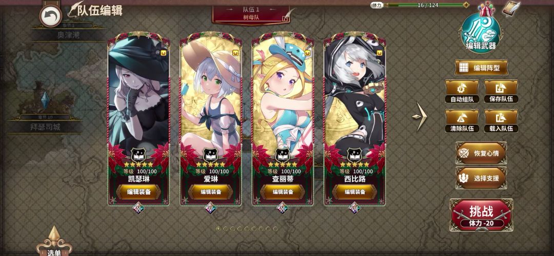 配置要点:时间之书和时间相对论,每个队员要带满,即每个人4本时间之书,1本时间相对论,树母要带满圣光之书或者专武,高阶恢复之书去填补空缺位置。