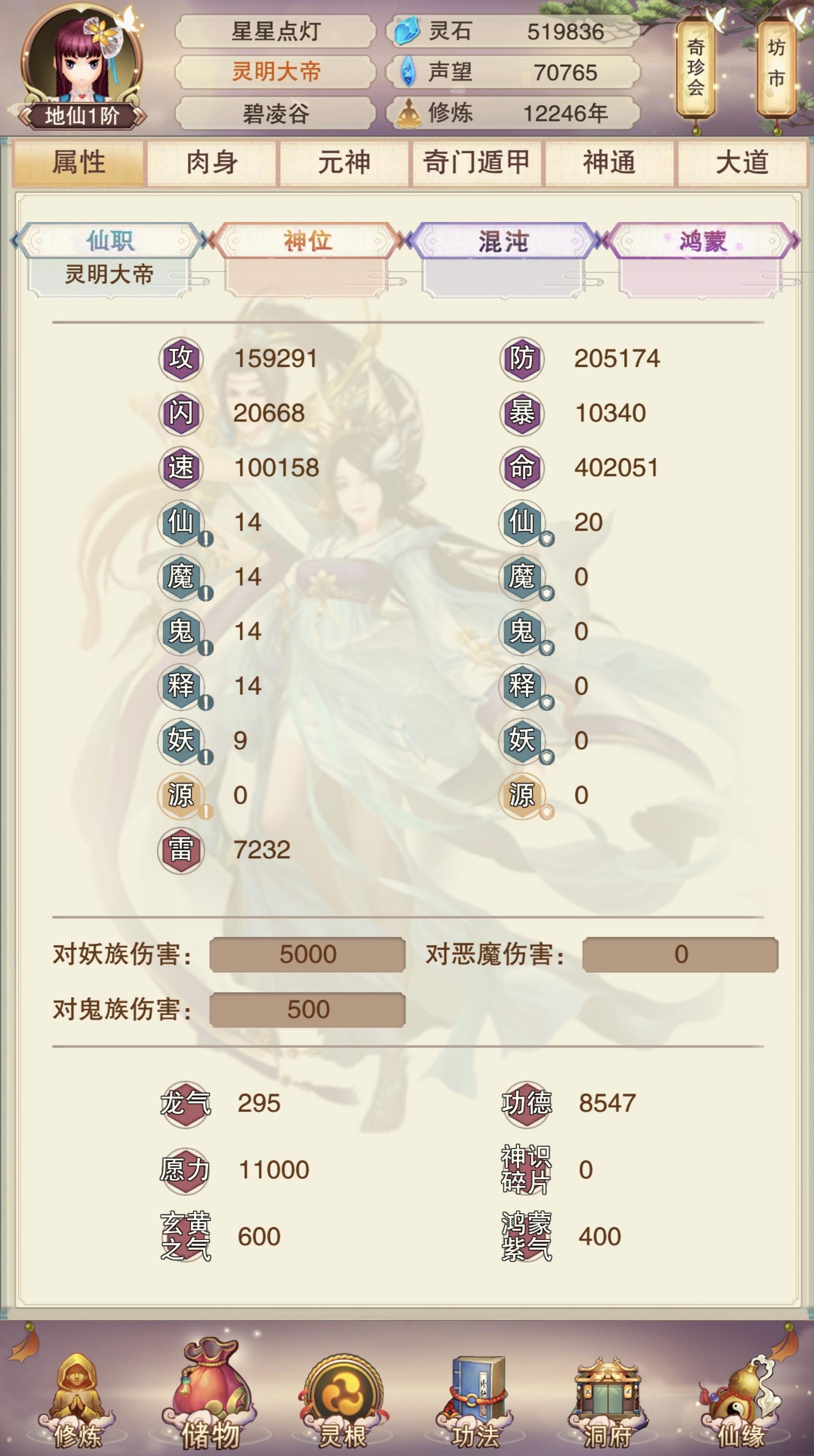 12163年地仙,功德买了四本天秘,未买六界攻防血。