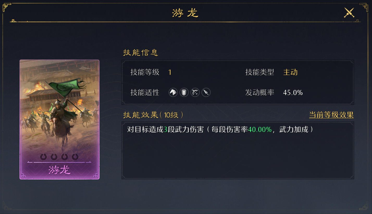 公孙瓒的固有技能和这个技能效果类似,但发动率要低一些,如果脸好的话公孙瓒比这个技能更强。