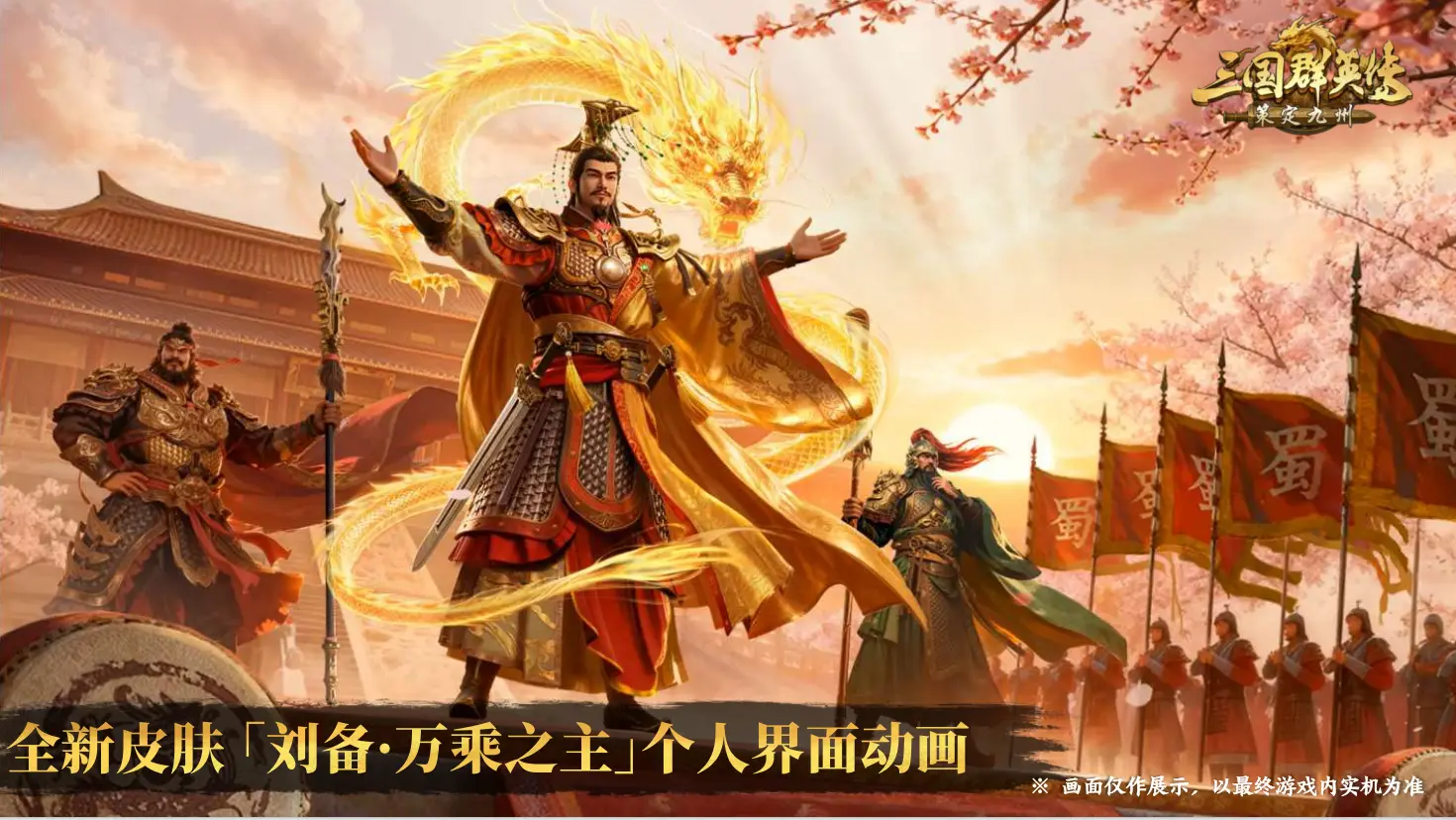 ●刘备・万乘之主新皮肤:炫酷外观来袭!无数值加成,主打的就是帅气,包含个人界面动画、技能特效、连斩头像、立绘外观,将于元旦庆典活动上线~